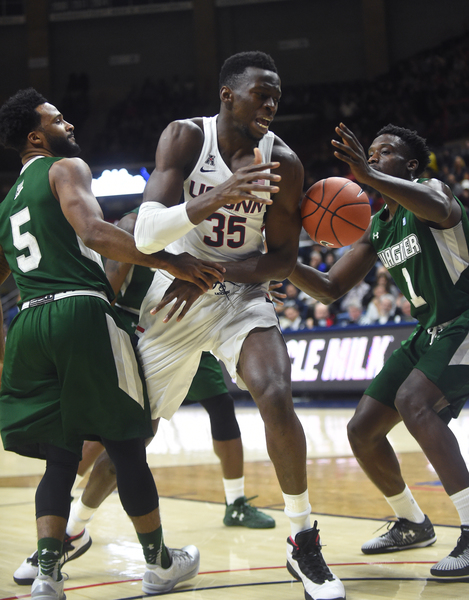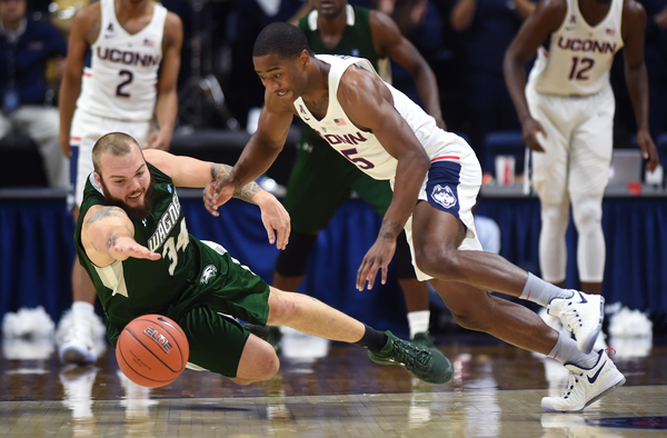 The Seahawks hit nine of their first 14 shots from the floor, as 260-pound center Mike Aaman really hurt UConn inside, with nine points and four rebounds in the first five minutes. When A.J. Sumbry hit a jumper, Wagner led 21-11 with 11:42 to go in the half and Kevin Ollie called a timeout.