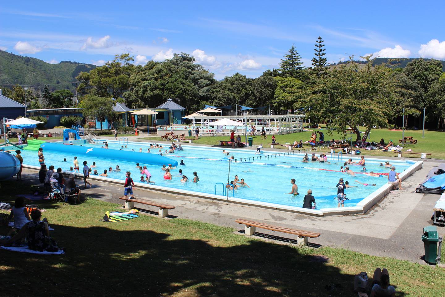 The main pool, toddler's pool, giant inflatable balance beam and hydroslide were in constant use as people enjoyed the outdoor picturesque surroundings.