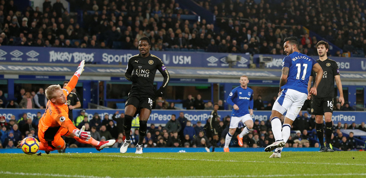 Soccer Football - Premier League - Everton vs Leicester City - Goodison Park, Liverpool, Britain - January 31, 2018 Leicester City's Demarai Gray in action with Everton's Idrissa Gueye REUTERS/Andrew Yates Soccer Football - Premier League - Everton vs Leicester City - Goodison Park, Liverpool, Britain - January 31, 2018 Leicester City’s Aleksandar Dragovic in action with Everton's Dominic Calvert-Lewin Action Images via Reuters/Carl Recine Soccer Football - Premier League - Everton vs Leicester City - Goodison Park, Liverpool, Britain - January 31, 2018 Everton's Wayne Rooney in action with Leicester City's Kasper Schmeichel REUTERS/Andrew YatesSoccer Football - Premier League - Everton vs Leicester City - Goodison Park, Liverpool, Britain - January 31, 2018 Everton's Theo Walcott celebrates scoring their second goal with team mates Action Images via Reuters/Carl Recine Soccer Football - Premier League - Everton vs Leicester City - Goodison Park, Liverpool, Britain - January 31, 2018 Everton's Theo Walcott in action with Leicester City's Harry Maguire Action Images via Reuters/Carl Recine Soccer Football - Premier League - Everton vs Leicester City - Goodison Park, Liverpool, Britain - January 31, 2018 Everton's Theo Walcott scores their first goal REUTERS/Andrew YatesSoccer Football - Premier League - Everton vs Leicester City - Goodison Park, Liverpool, Britain - January 31, 2018 Everton's Theo Walcott celebrates scoring their first goal with team mates REUTERS/Andrew Yates Soccer Football - Premier League - Everton vs Leicester City - Goodison Park, Liverpool, Britain - January 31, 2018 Leicester City's Wilfred Ndidi hits the cross bar with a shot at goal Action Images via Reuters/Carl Recine Soccer Football - Premier League - Everton vs Leicester City - Goodison Park, Liverpool, Britain - January 31, 2018 Everton's Oumar Niasse in action with Leicester City’s Aleksandar Dragovic REUTERS/Andrew Yates Soccer Football - Premier League - Everton vs Leicester City - Goodison Park, Liverpool, Britain - January 31, 2018 Leicester City's Kasper Schmeichel in action with Everton's Michael Keane REUTERS/Andrew YatesSoccer Football - Premier League - Everton vs Leicester City - Goodison Park, Liverpool, Britain - January 31, 2018 Everton's Seamus Coleman in action with Leicester City's Demarai Gray Action Images via Reuters/Carl RecineSoccer Football - Premier League - Everton vs Leicester City - Goodison Park, Liverpool, Britain - January 31, 2018 Everton's Oumar Niasse in action with Leicester City's Harry Maguire Action Images via Reuters/Carl Recine