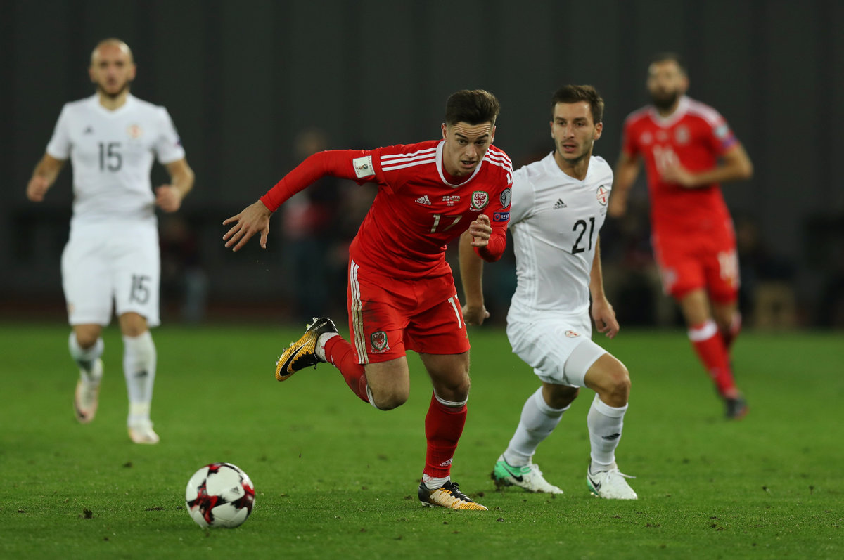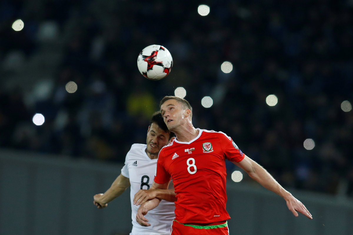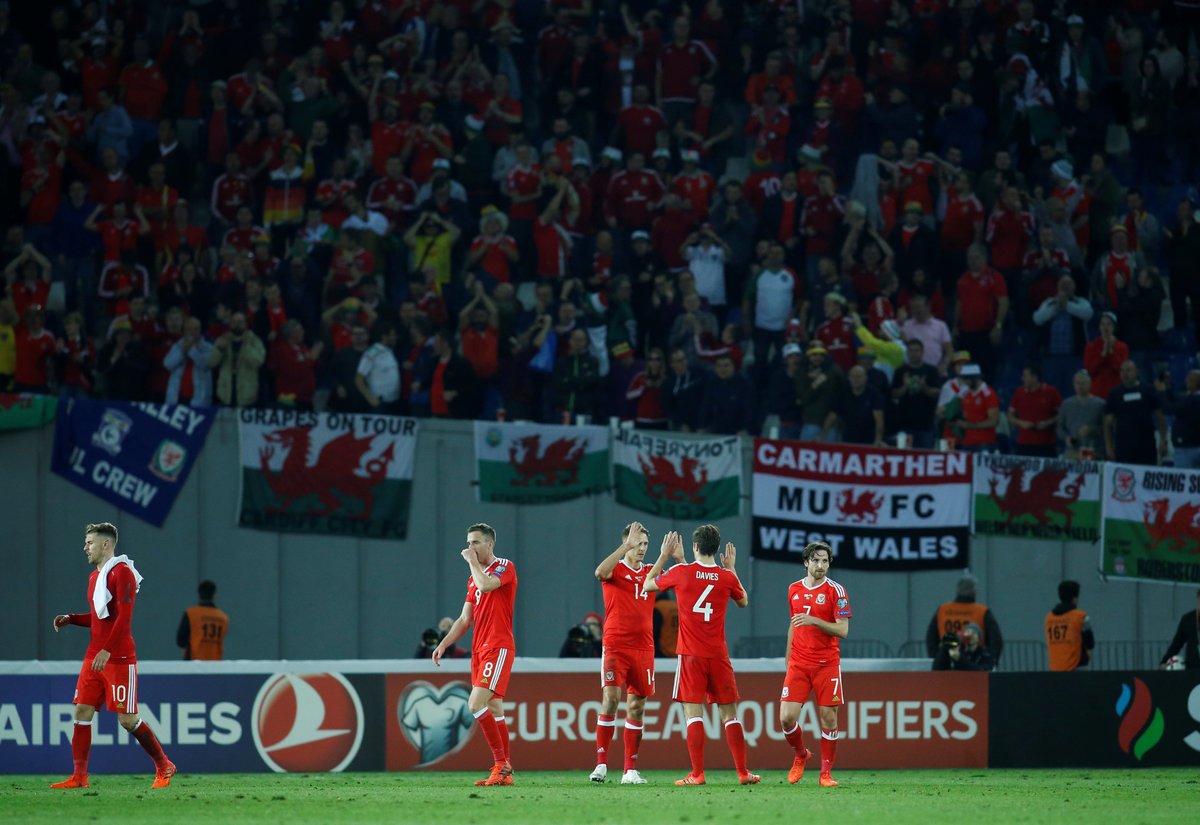Soccer Football - 2018 World Cup Qualifications - Europe - Georgia vs Wales - Boris Paichadze Dinamo Arena, Tbilisi, Georgia - October 6, 2017 Wales' players celebrate after the game REUTERS/David MdzinarishviliSoccer Football - 2018 World Cup Qualifications - Europe - Georgia vs Wales - Boris Paichadze Dinamo Arena, Tbilisi, Georgia - October 6, 2017 Wales' Ashley Williams and James Chester celebrate after the game REUTERS/David MdzinarishviliSoccer Football - 2018 World Cup Qualifications - Europe - Georgia vs Wales - Boris Paichadze Dinamo Arena, Tbilisi, Georgia - October 6, 2017 Wales' David Edwards, Ben Davies, Joe Allen, Andy King and Aaron Ramsey celebrate after the game REUTERS/David MdzinarishviliSoccer Football - 2018 World Cup Qualifications - Europe - Georgia vs Wales - Boris Paichadze Dinamo Arena, Tbilisi, Georgia - October 6, 2017 Georgia’s Jaba Kankava in action with Wales' Tom Lawrence Action Images via Reuters/Peter CziborraSoccer Football - 2018 World Cup Qualifications - Europe - Georgia vs Wales - Boris Paichadze Dinamo Arena, Tbilisi, Georgia - October 6, 2017 Wales' Tom Lawrence celebrates with David Edwards after the match Action Images via Reuters/Peter CziborraSoccer Football - 2018 World Cup Qualifications - Europe - Georgia vs Wales - Boris Paichadze Dinamo Arena, Tbilisi, Georgia - October 6, 2017 Wales' Tom Lawrence celebrates with teammates after the match Action Images via Reuters/Peter Cziborra