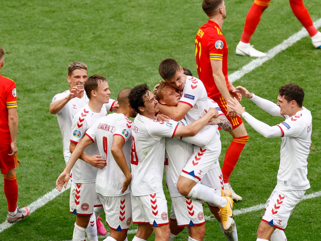 He doubled Denmark’s advantage in Amsterdam early in the second half, ruthlessly pouncing on a loose ball after Wales failed to clear a cross following a galloping run down the right wing from Dolberg’s strike partner Martin Braithwaite.