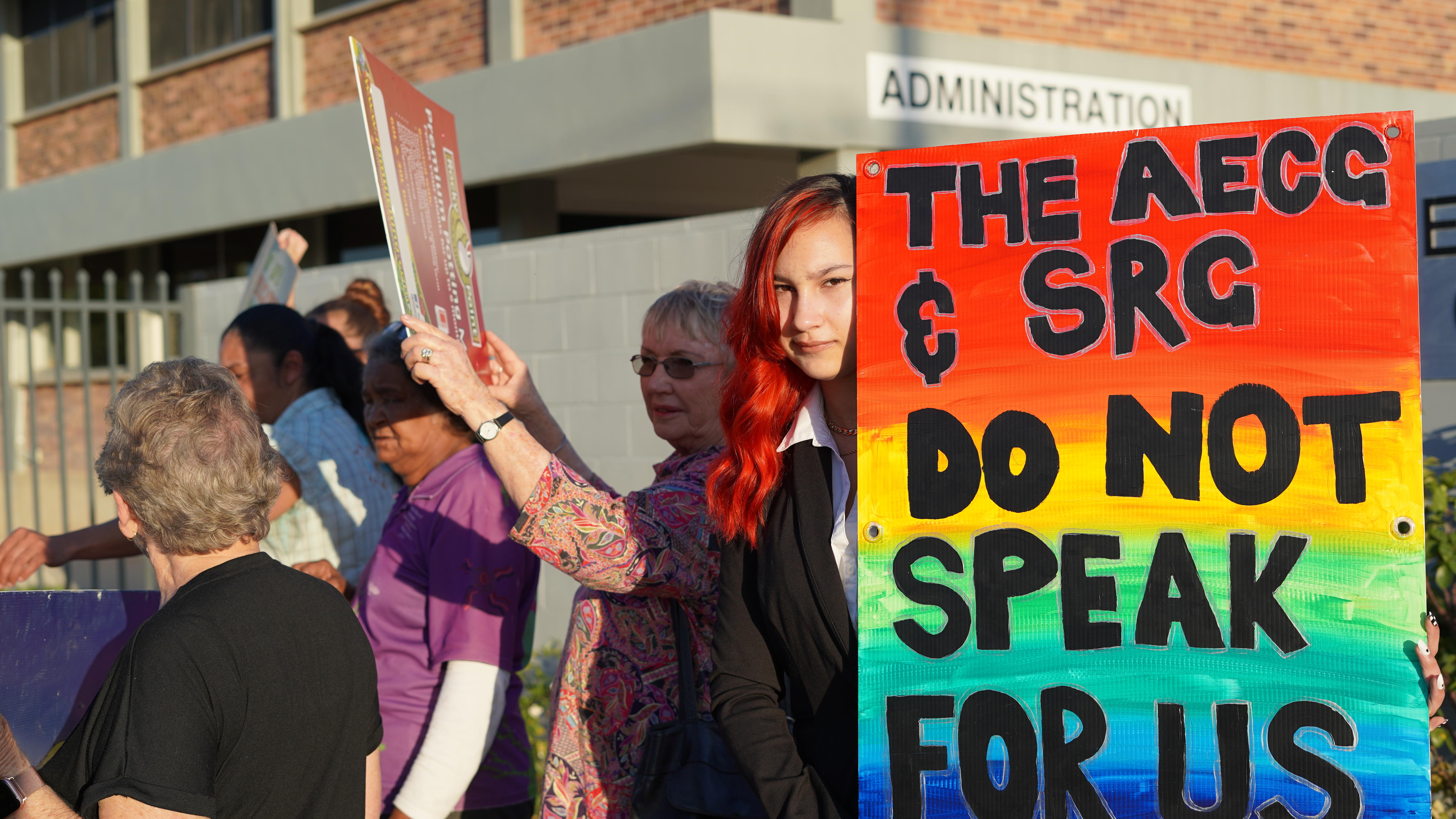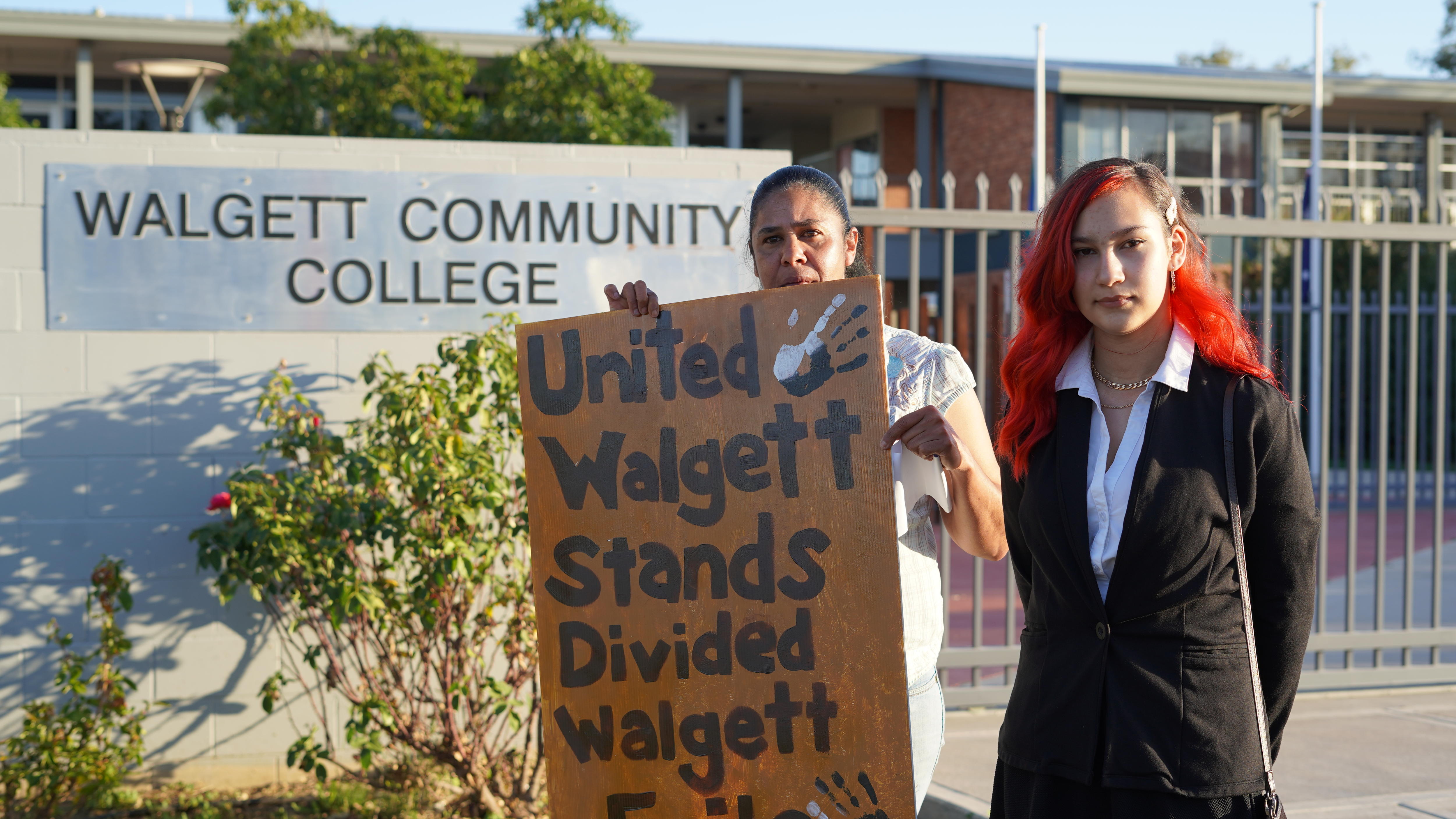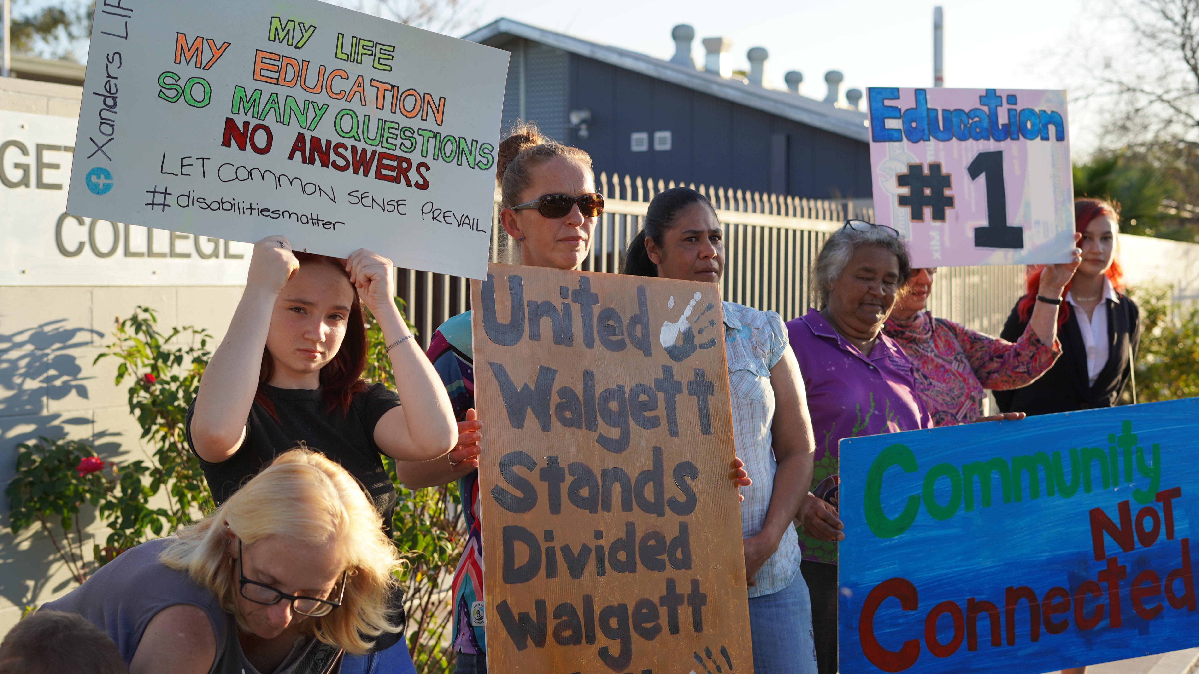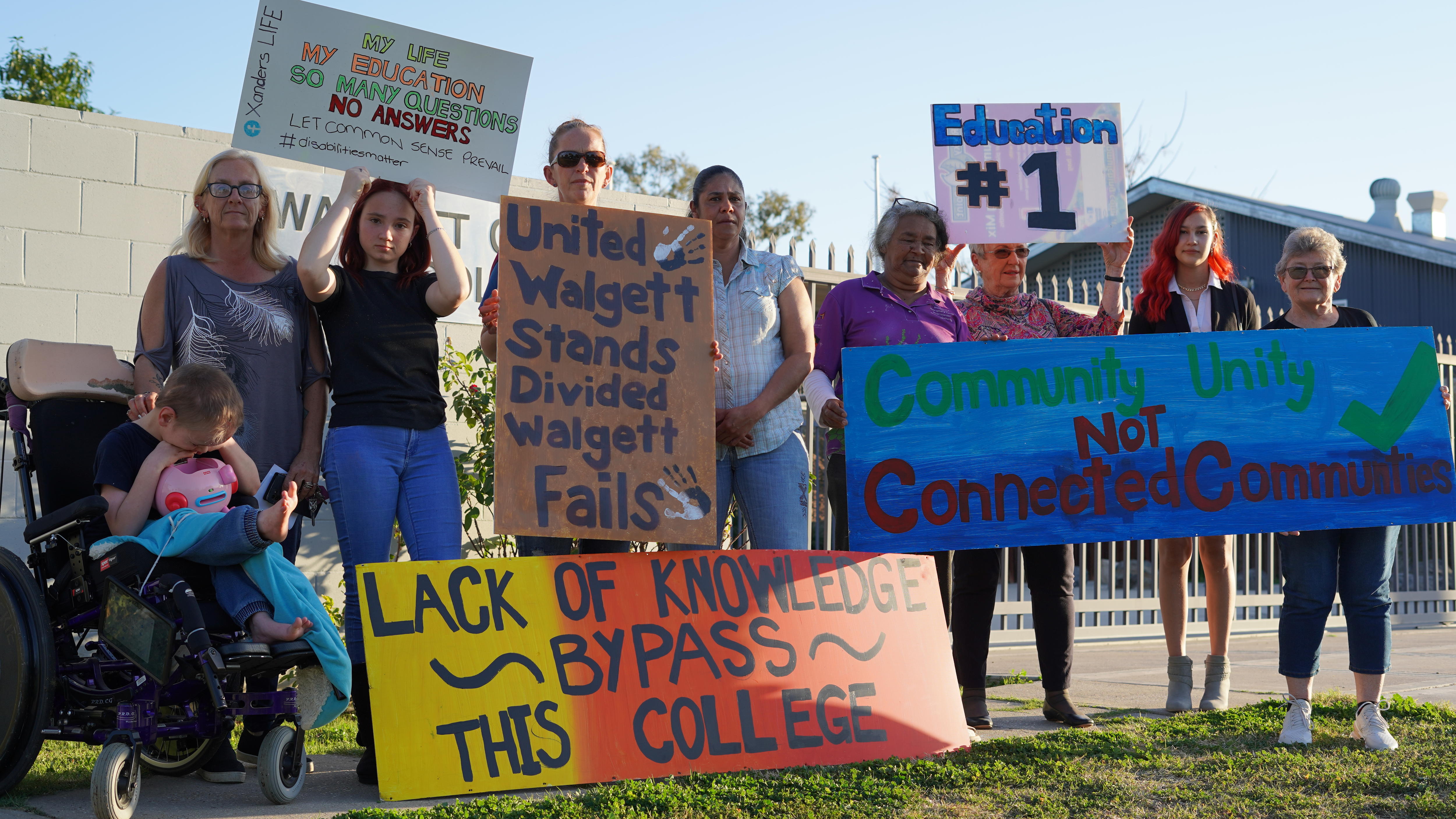 They held up signs with messages including "United Walgett stands, divided Walgett fails" and "Lack of knowledge, bypass this college".