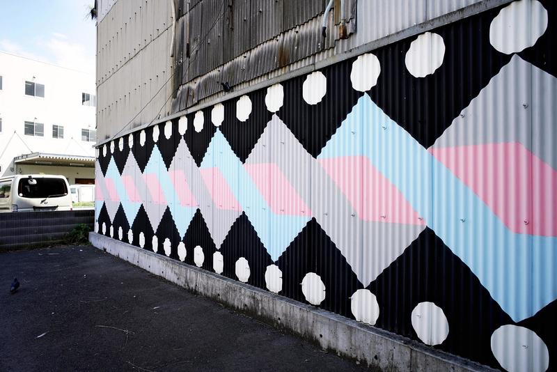 MASAGON, a 40-year-old artist who has a studio nearby, painted a pattern of interlacing geometric shapes on the wall of a factory in the district.