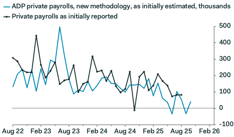 Deutsche Bank argued that a December cut was now less likely. “Private payrolls were up by +42k in October (vs. +30k expected), which was a clear rebound from the -29k contraction in September. That’s a release that’s taken on more significance than usual, given we’re missing the usual jobs report because of the shutdown,” Jim Reid and his team at Deutsche Bank told clients this morning. “The U.S. outlook was more resilient than feared.