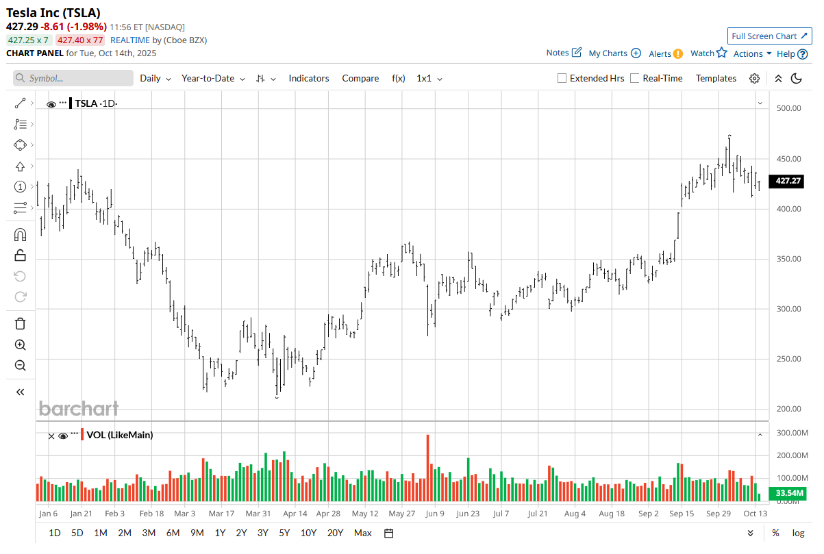 Tesla's shares have fluctuated between $212.11 and $488.54 during the last 52 weeks, currently exchanging hands around $427, up ~5% year-to-date. TSLA stock has pulled back around 5% this week on the news of the updated pricing.