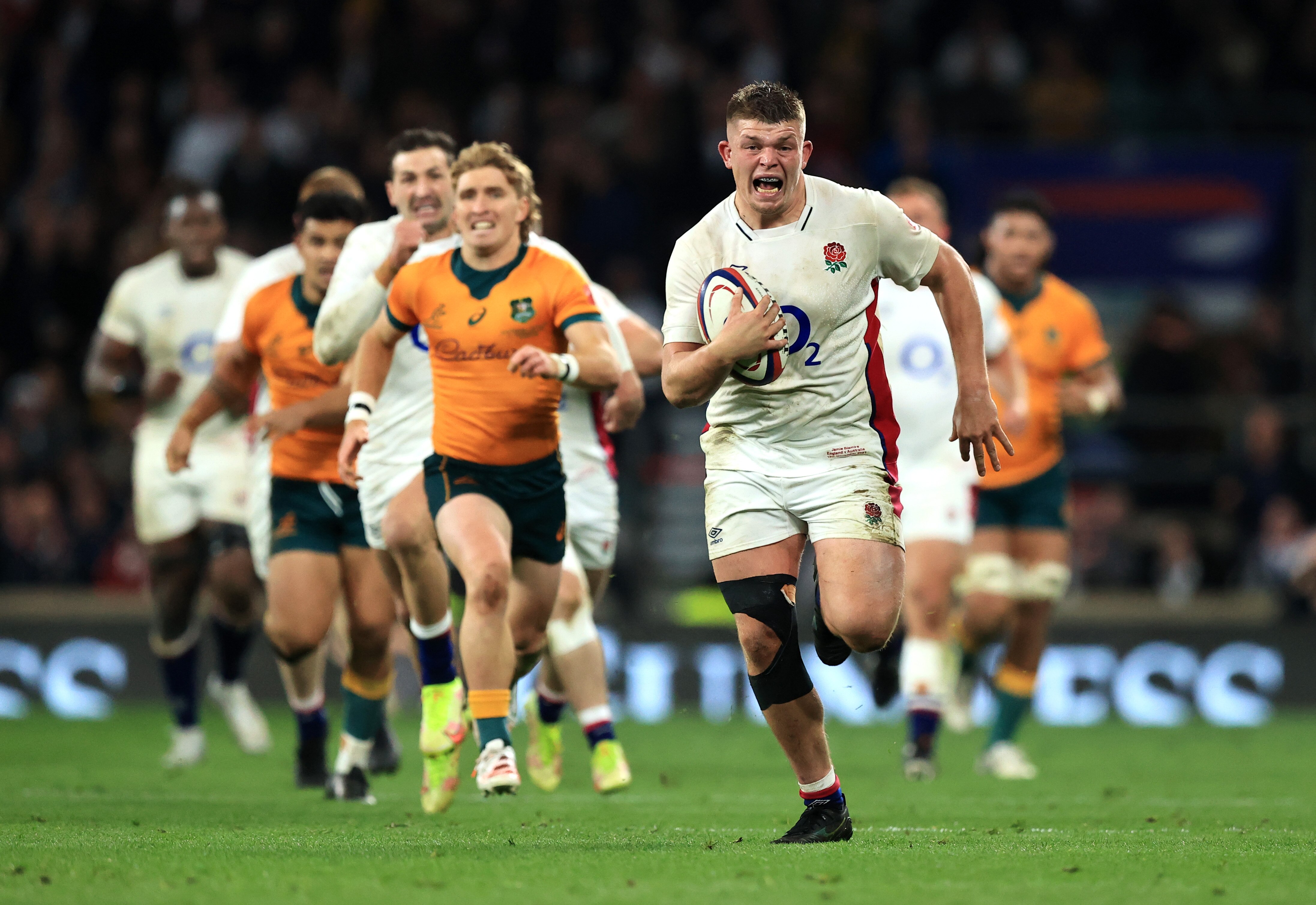 With Farrell off injured, Smith added a further penalty to make the game effectively safe and the home crowd got the lift they desperately wanted when Sam Simmonds broke up a final Australian attack in his own 22 and fed Blamire to trundle home.