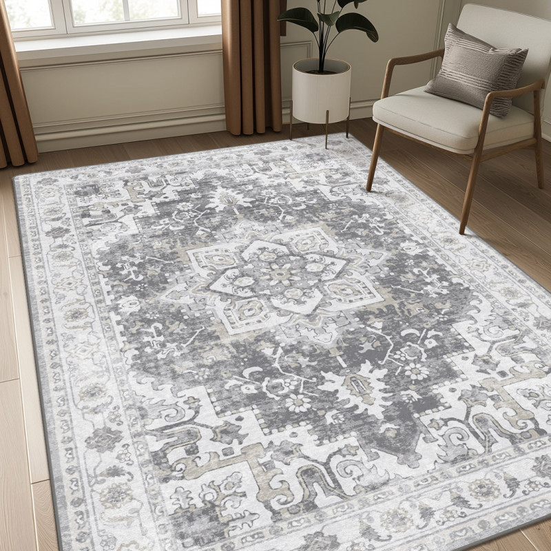 Designed in a gorgeous gray color, the rug is neutral enough to seamlessly blend with any existing decor while still adding depth and texture to any room thanks to a classic vintage-style pattern.