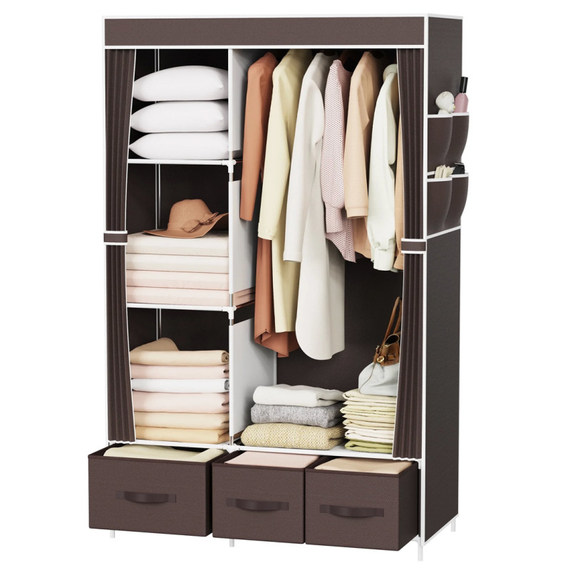 This product was designed with efficiency in mind, but it's not bad to look at either. The organizer includes dual rods for hanging clothes and three fabric drawers at the bottom for items that you wish to keep separate. Four spacious shelves easily fit folded clothes, shoes, or accessories. The detachable fabric cover is perfect for keeping your clothes accessible, but not visible. The entire organizer is lightweight and easy to install, making it highly portable as well. Combine it with another closet organizer for even more storage!