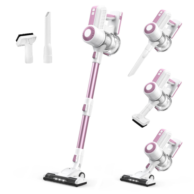 The cordless vacuum cleaner is incredibly lightweight. At only 2.8 pounds, you can maneuver it around with ease. The vacuum comes with attachments that you can swap out depending on your cleaning needs. In addition to cleaning larger spaces, you can turn it into a handheld vacuum to clean smaller areas, from baseboards to cramped corners.