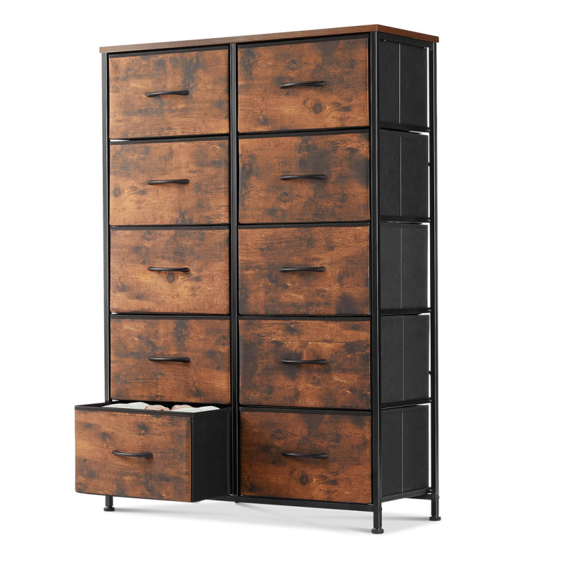 This is a dresser that offers all the basics in a beautiful package. The fabric-sided drawers are deep and easy to open and close. They also fold conveniently flat when not in use for easy storage. The wooden top and drawer faces are sturdy and waterproof, and they add an attractive rustic feel to the piece. Also included is a wall mounting kit, which is a nice added safety feature. The dresser is available in seven size options and four colors as well. If variety is the spice of life, then this dresser is one of the spiciest items you can buy!