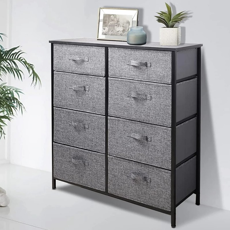 With a weight of just 30 pounds, this dresser is lightweight enough to be moved from room to room as you redecorate with little hassle. It has six large drawers and two medium ones at the top. All the drawers are fabric-sided and easily collapsed when not in use. The lower drawers are deep enough that they can easily fit large items like toys or tools if needed.