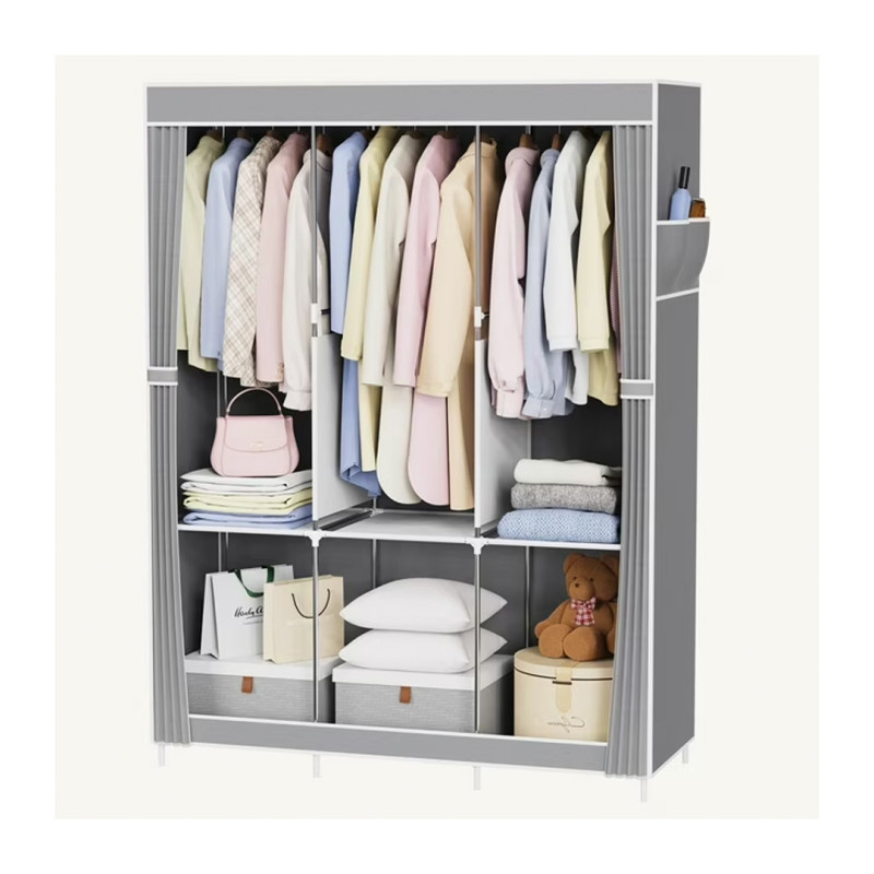 This lightweight wardrobe is the perfect way to organize your clothing without using up valuable closet space. It's large enough to fit a lot of clothes and shoes without stealing a lot of square footage from your bedroom. The portable closet includes hanging rods, shelves, and cubby space. Its lightweight aluminum construction allows it to be moved easily and it's easy to assemble. The dustproof breathable cover keeps the items inside clean, tidy, and protected from external moisture.