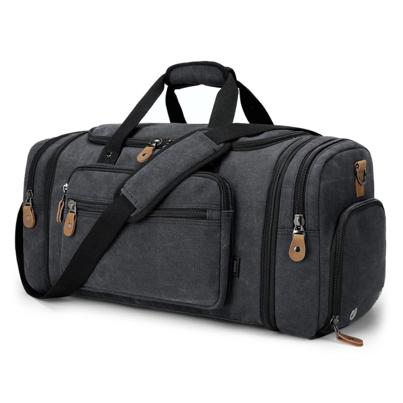 This is an incredibly utilitarian bag that looks great, too. The canvas construction and leather accents are sturdy and attractive. Five outer zipper pockets and one main compartment make the bag perfect for separating items between those you need close at hand, and everything else. When expanded fully, the duffel has a large capacity of 60 liters in addition to a separate shoe compartment. It's available in three sizes and two color variations (at different price points), so you can have your pick when it comes to style and configuration.