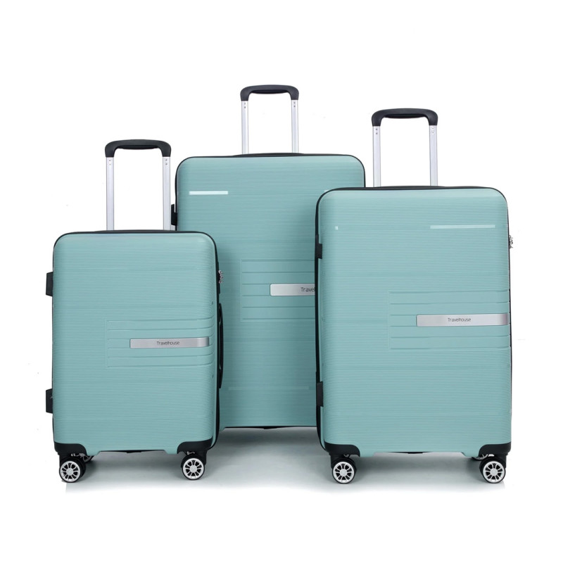 This is a luggage set that does not disappoint. It has a rugged ABS construction that can make it through the longest trips without dents or scratches. The set also includes TSA-approved built-in locks, durable nylon double spinner wheels, a zipper pouch, and cross straps to keep your items from shifting during travel. It comes with a large 28-inch checked bag, a medium 24-inch suitcase, and a small 20-inch carry-on. The set also comes in seven colorways to suit various styles.