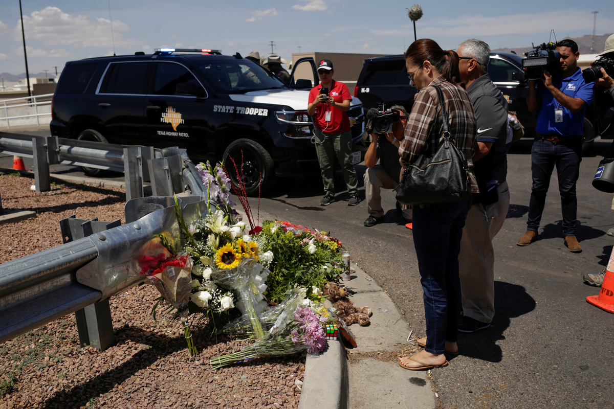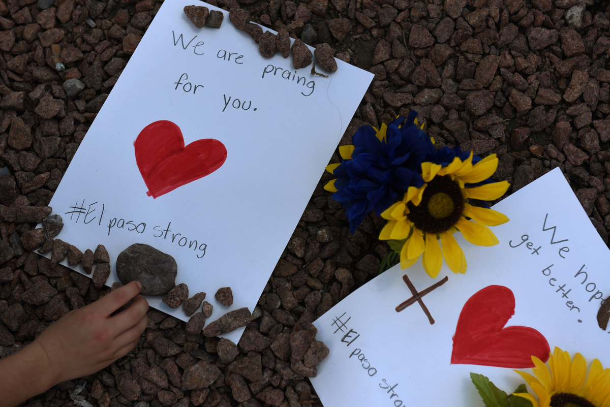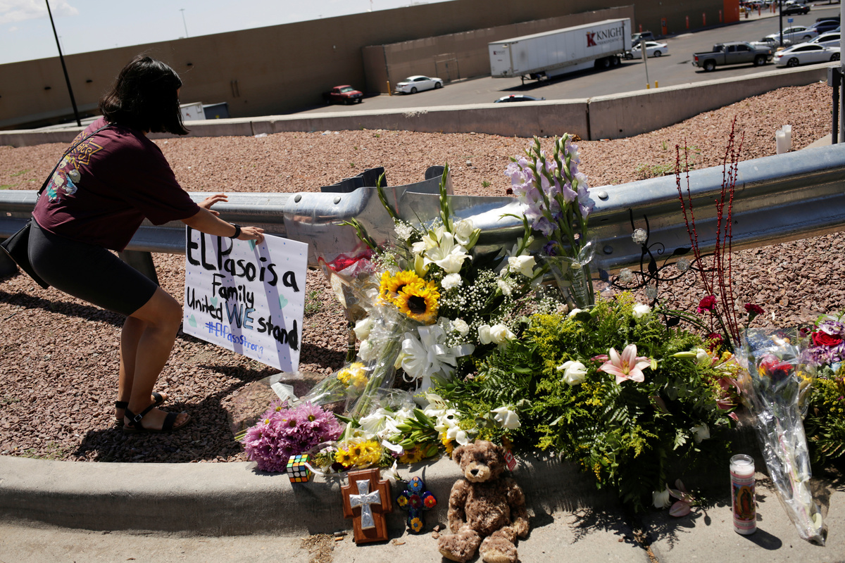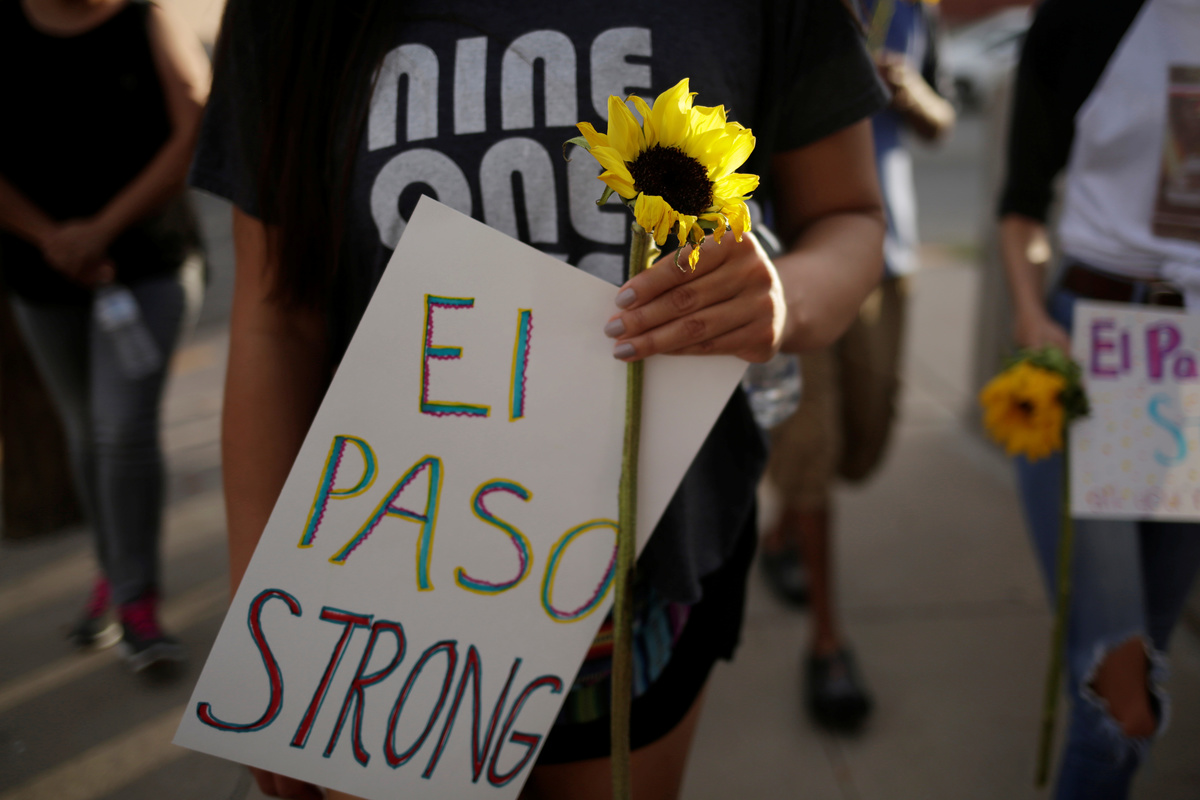 Democratic presidential candidate Beto O'Rourke takes part in a rally against hate a day after a mass shooting at a Walmart store, in El Paso, Texas, U.S. August 4, 2019. REUTERS/Jose Luis GonzalezPeople take part in a rally against hate a day after a mass shooting at a Walmart store, in El Paso, Texas, U.S. August 4, 2019. REUTERS/Jose Luis GonzalezA man places an American flag in the pile of flowers that has gathered a day after a mass shooting at a Walmart store in El Paso, Texas, U.S. August 4, 2019. REUTERS/Callaghan O'HareA young boy places rocks on a card at the pile of flowers that has gathered a day after a mass shooting at a Walmart store in El Paso, Texas, U.S. August 4, 2019. REUTERS/Callaghan O'HareA man reacts outside MacArthur Elementary-Intermediate School after police gave information about the victims of the mass shooting at a Walmart store, in El Paso, Texas, U.S. August 4, 2019. REUTERS/Jose Luis GonzalezA man reacts outside MacArthur Elementary-Intermediate School after police gave information about the victims of the mass shooting at a Walmart store, in El Paso, Texas, U.S. August 4, 2019. REUTERS/Jose Luis GonzalezFlowers are seen at the site of a mass shooting where 20 people lost their lives at a Walmart in El Paso, Texas, U.S. August 4, 2019. REUTERS/Jose Luis GonzalezA woman places a placard at the site of a mass shooting where 20 people lost their lives at a Walmart in El Paso, Texas, U.S. August 4, 2019. REUTERS/Jose Luis GonzalezA Tv news reporter gets emotional at the site of a mass shooting where 20 people lost their lives at a Walmart in El Paso, Texas, U.S. August 4, 2019. REUTERS/Jose Luis GonzalezA volunteer delivers water at the site of a mass shooting where 20 people lost their lives at a Walmart in El Paso, Texas, U.S. August 4, 2019. REUTERS/Jose Luis GonzalezPeople look at flowers placed at the site of a mass shooting where 20 people lost their lives at a Walmart in El Paso, Texas, U.S. August 4, 2019. REUTERS/Jose Luis GonzalezThe U.S. flag is seen at half-mast, near the site of a mass shooting where 20 people lost their lives at a Walmart in El Paso, Texas, U.S. August 4, 2019. REUTERS/Jose Luis GonzalezDemocratic presidential candidate Beto O'Rourke embraces Patricia Olivera a relative of one of the survivors at the site of a mass shooting where 20 people lost their lives at a Walmart in El Paso, Texas, U.S. August 4, 2019. REUTERS/Jose Luis GonzalezDemocratic presidential candidate Beto O'Rourke is seen at the site of a mass shooting where 20 people lost their lives at a Walmart in El Paso, Texas, U.S. August 4, 2019. REUTERS/Jose Luis GonzalezFlowers are seen at the site of a mass shooting where 20 people lost their lives at a Walmart in El Paso, Texas, U.S. August 4, 2019. REUTERS/Jose Luis GonzalezA man places flowers at the site of a mass shooting where 20 people lost their lives at a Walmart in El Paso, Texas, U.S. August 4, 2019. REUTERS/Jose Luis GonzalezPeople react at the site of a mass shooting where 20 people lost their lives at a Walmart in El Paso, Texas, U.S. August 4, 2019. REUTERS/Jose Luis GonzalezMourners take part in a vigil at El Paso High School after a mass shooting at a Walmart store in El Paso, Texas, U.S. August 3, 2019. REUTERS/Jose Luis Gonzalez TPX IMAGES OF THE DAYMourners taking part in a vigil at El Paso High School after a mass shooting at a Walmart store in El Paso, Texas, U.S. August 3, 2019. REUTERS/Jose Luis GonzalezA woman reacts after a mass shooting at a Walmart in El Paso, Texas, U.S. August 3, 2019. REUTERS/Jose Luis GonzalezMourners take part in a vigil near the border fence between Mexico and the U.S after a mass shooting at a Walmart store in El Paso U.S. in Ciudad Juarez. August 3, 2019. REUTERS/Carlos SanchezMourners take part in a vigil near the border fence between Mexico and the U.S after a mass shooting at a Walmart store in El Paso U.S. in Ciudad Juarez. August 3, 2019. REUTERS/Carlos Sanchez A woman reacts after a mass shooting at a Walmart in El Paso, Texas, U.S. August 3, 2019. REUTERS/Jose Luis GonzalezFrancisco Castaneda joins mourners taking part in a vigil at El Paso High School after a mass shooting at a Walmart store in El Paso, Texas, U.S. August 3, 2019. REUTERS/Jorge SalgadoState Rep. Lina Ortega leads mourners taking part in a vigil at El Paso High School after a mass shooting at a Walmart store in El Paso, Texas, U.S. August 3, 2019. REUTERS/Jorge SalgadoA police cordon is seen after a mass shooting at a Walmart in El Paso, Texas, U.S. August 3, 2019. REUTERS/Jose Luis GonzalezSamuel Lerma, Arzetta Hodges and Desiree Qunitana join mourners taking part in a vigil at El Paso High School after a mass shooting at a Walmart store in El Paso, Texas, U.S. August 3, 2019. REUTERS/Jorge Salgado.