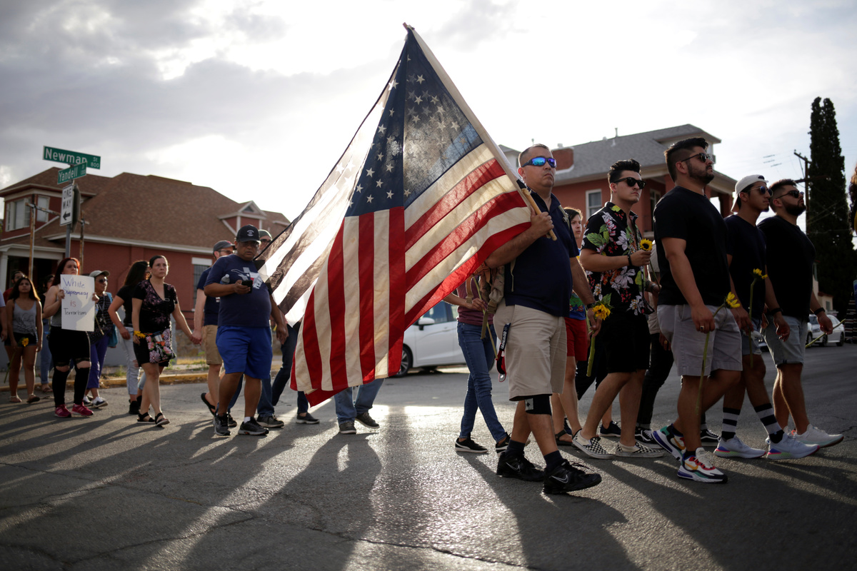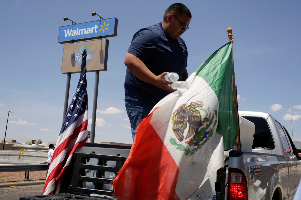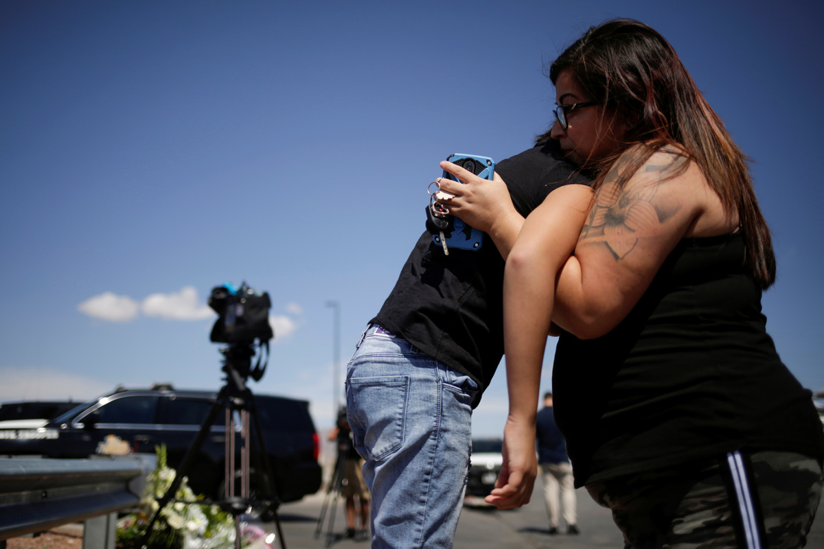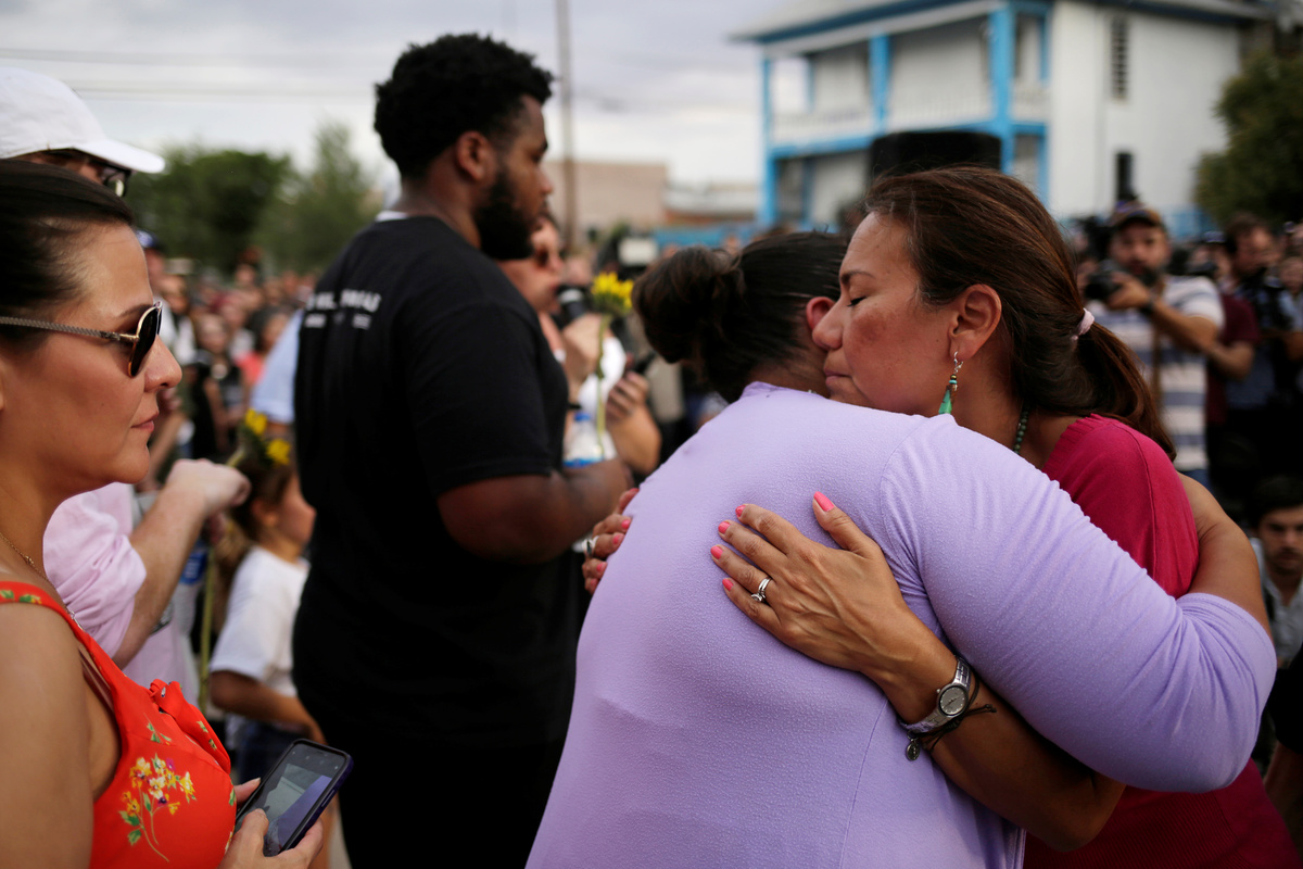 Democratic presidential candidate Beto O'Rourke takes part in a rally against hate a day after a mass shooting at a Walmart store, in El Paso, Texas, U.S. August 4, 2019. REUTERS/Jose Luis GonzalezPeople take part in a rally against hate a day after a mass shooting at a Walmart store, in El Paso, Texas, U.S. August 4, 2019. REUTERS/Jose Luis GonzalezA man places an American flag in the pile of flowers that has gathered a day after a mass shooting at a Walmart store in El Paso, Texas, U.S. August 4, 2019. REUTERS/Callaghan O'HareA young boy places rocks on a card at the pile of flowers that has gathered a day after a mass shooting at a Walmart store in El Paso, Texas, U.S. August 4, 2019. REUTERS/Callaghan O'HareA man reacts outside MacArthur Elementary-Intermediate School after police gave information about the victims of the mass shooting at a Walmart store, in El Paso, Texas, U.S. August 4, 2019. REUTERS/Jose Luis GonzalezA man reacts outside MacArthur Elementary-Intermediate School after police gave information about the victims of the mass shooting at a Walmart store, in El Paso, Texas, U.S. August 4, 2019. REUTERS/Jose Luis GonzalezFlowers are seen at the site of a mass shooting where 20 people lost their lives at a Walmart in El Paso, Texas, U.S. August 4, 2019. REUTERS/Jose Luis GonzalezA woman places a placard at the site of a mass shooting where 20 people lost their lives at a Walmart in El Paso, Texas, U.S. August 4, 2019. REUTERS/Jose Luis GonzalezA Tv news reporter gets emotional at the site of a mass shooting where 20 people lost their lives at a Walmart in El Paso, Texas, U.S. August 4, 2019. REUTERS/Jose Luis GonzalezA volunteer delivers water at the site of a mass shooting where 20 people lost their lives at a Walmart in El Paso, Texas, U.S. August 4, 2019. REUTERS/Jose Luis GonzalezPeople look at flowers placed at the site of a mass shooting where 20 people lost their lives at a Walmart in El Paso, Texas, U.S. August 4, 2019. REUTERS/Jose Luis GonzalezThe U.S. flag is seen at half-mast, near the site of a mass shooting where 20 people lost their lives at a Walmart in El Paso, Texas, U.S. August 4, 2019. REUTERS/Jose Luis GonzalezDemocratic presidential candidate Beto O'Rourke embraces Patricia Olivera a relative of one of the survivors at the site of a mass shooting where 20 people lost their lives at a Walmart in El Paso, Texas, U.S. August 4, 2019. REUTERS/Jose Luis GonzalezDemocratic presidential candidate Beto O'Rourke is seen at the site of a mass shooting where 20 people lost their lives at a Walmart in El Paso, Texas, U.S. August 4, 2019. REUTERS/Jose Luis GonzalezFlowers are seen at the site of a mass shooting where 20 people lost their lives at a Walmart in El Paso, Texas, U.S. August 4, 2019. REUTERS/Jose Luis GonzalezA man places flowers at the site of a mass shooting where 20 people lost their lives at a Walmart in El Paso, Texas, U.S. August 4, 2019. REUTERS/Jose Luis GonzalezPeople react at the site of a mass shooting where 20 people lost their lives at a Walmart in El Paso, Texas, U.S. August 4, 2019. REUTERS/Jose Luis GonzalezMourners take part in a vigil at El Paso High School after a mass shooting at a Walmart store in El Paso, Texas, U.S. August 3, 2019. REUTERS/Jose Luis Gonzalez TPX IMAGES OF THE DAYMourners taking part in a vigil at El Paso High School after a mass shooting at a Walmart store in El Paso, Texas, U.S. August 3, 2019. REUTERS/Jose Luis GonzalezA woman reacts after a mass shooting at a Walmart in El Paso, Texas, U.S. August 3, 2019. REUTERS/Jose Luis GonzalezMourners take part in a vigil near the border fence between Mexico and the U.S after a mass shooting at a Walmart store in El Paso U.S. in Ciudad Juarez. August 3, 2019. REUTERS/Carlos SanchezMourners take part in a vigil near the border fence between Mexico and the U.S after a mass shooting at a Walmart store in El Paso U.S. in Ciudad Juarez. August 3, 2019. REUTERS/Carlos Sanchez A woman reacts after a mass shooting at a Walmart in El Paso, Texas, U.S. August 3, 2019. REUTERS/Jose Luis GonzalezFrancisco Castaneda joins mourners taking part in a vigil at El Paso High School after a mass shooting at a Walmart store in El Paso, Texas, U.S. August 3, 2019. REUTERS/Jorge SalgadoState Rep. Lina Ortega leads mourners taking part in a vigil at El Paso High School after a mass shooting at a Walmart store in El Paso, Texas, U.S. August 3, 2019. REUTERS/Jorge SalgadoA police cordon is seen after a mass shooting at a Walmart in El Paso, Texas, U.S. August 3, 2019. REUTERS/Jose Luis GonzalezSamuel Lerma, Arzetta Hodges and Desiree Qunitana join mourners taking part in a vigil at El Paso High School after a mass shooting at a Walmart store in El Paso, Texas, U.S. August 3, 2019. REUTERS/Jorge Salgado.