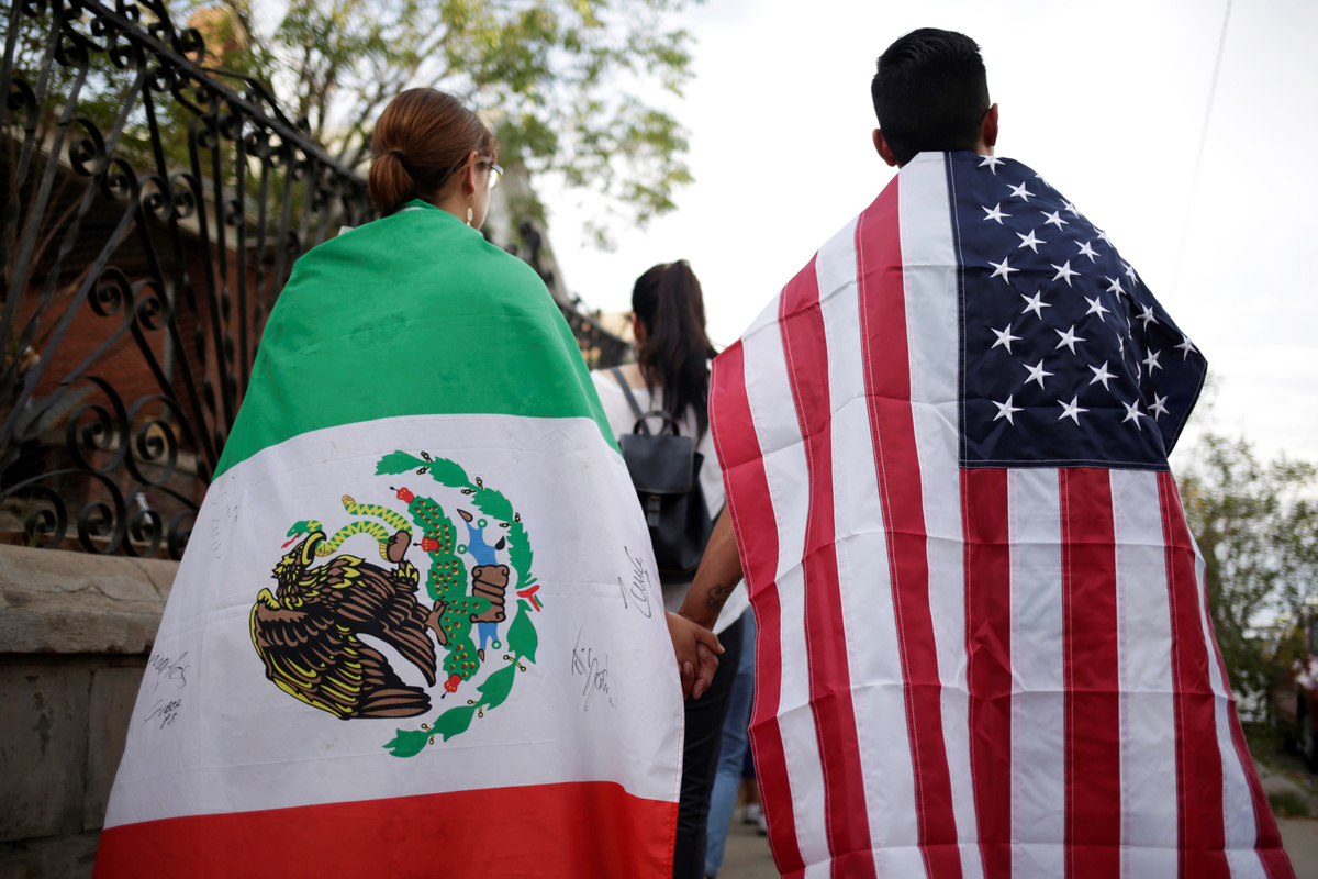 People with the Mexican flag and the U.S. flag take part in a rally against hate a day after a mass shooting at a Walmart store, in El Paso, Texas, U.S. August 4, 2019. REUTERS/Jose Luis Gonzalez