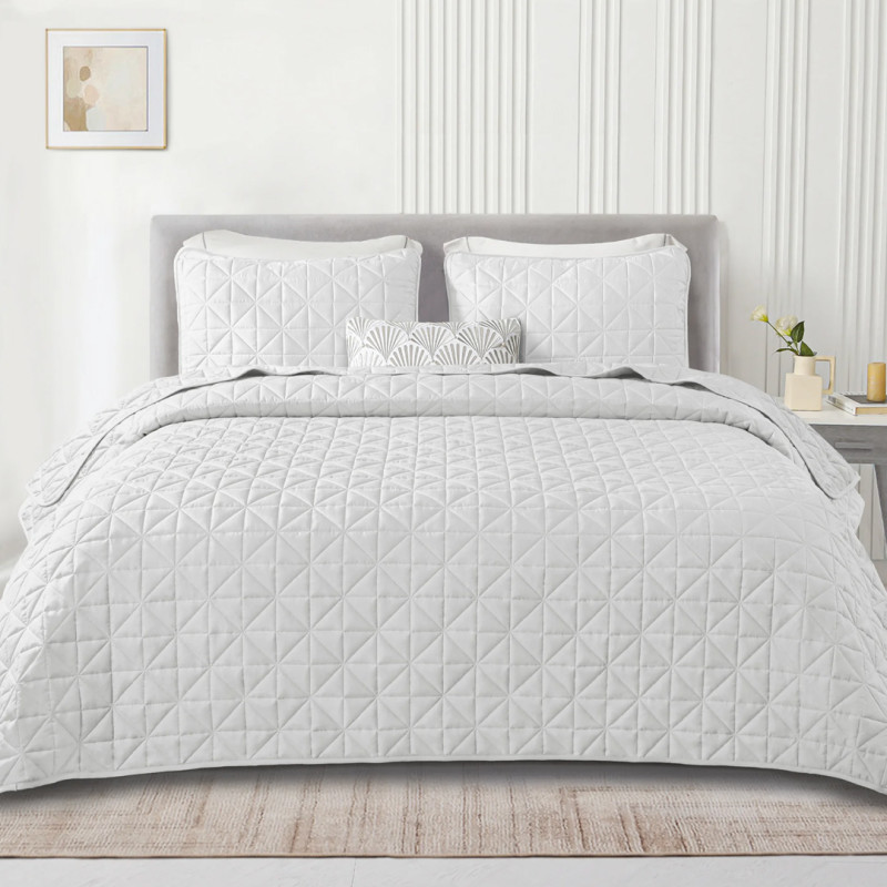 It's rare to find a bedding set that can be used comfortably year-round, but that's exactly what this quilt offers. The 100% microfiber fabric is very breathable, making it adept at continuous temperature regulation. It's soft to the touch and machine-washable. The set includes a reversible quilt and two matching pillow shams. Stitched geometric patterns on the blanket and shams offer a level of dimension and sophistication to your bedroom decor. You can also choose from 15 different colorways to match your room's color scheme.