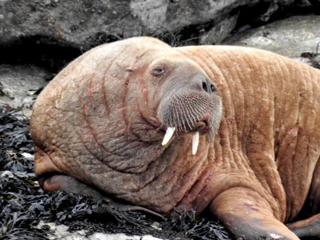 The walrus is thought to be young because its tusks are “about 3in long”, according to Ms Browne, who said the animal may have fallen “asleep on an iceberg and ended up drifting across and woke up in Ireland”.
