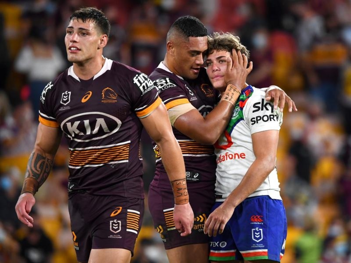 As Brisbane players celebrated Sunday's 24-22 NRL win over the Warriors, teenager Reece Walsh slumped to his haunches having missed two opportunities to level the match in the final two minutes.