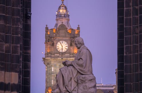 Wander through Edinburgh and you will find glimpses of Scotland’s most famous novelist, Walter Scott, everywhere: pubs named after characters or places in his books, his walking cane and slippers in The Writers’ Museum, and snippets of his work adorning the walkways of Waverley train station – named after his first and most famous novel. And just outside, towering over Princes Street Gardens, his statue stands beneath an elaborate monument affectionately dubbed the “Gothic Rocket”.