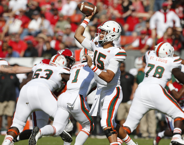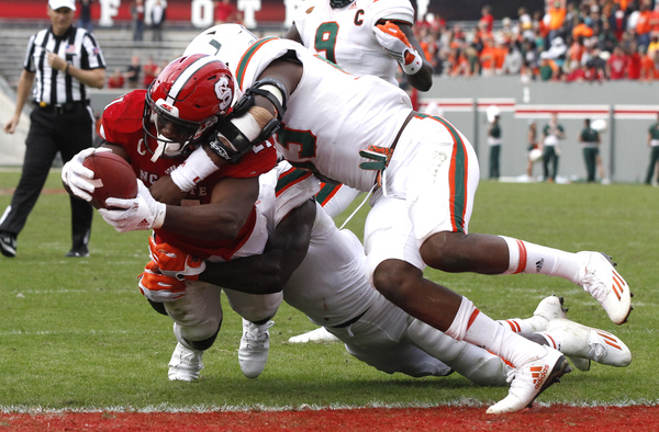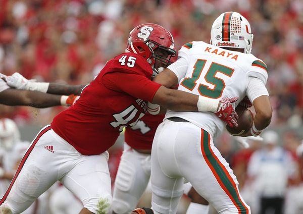 And those problems meant that once again, Kaaya was harassed and hit often. The quarterback was sacked twice in the first half, while Miami's running game struggled against the Wolfpack's stout defensive front. And Badgley missed a kick late.