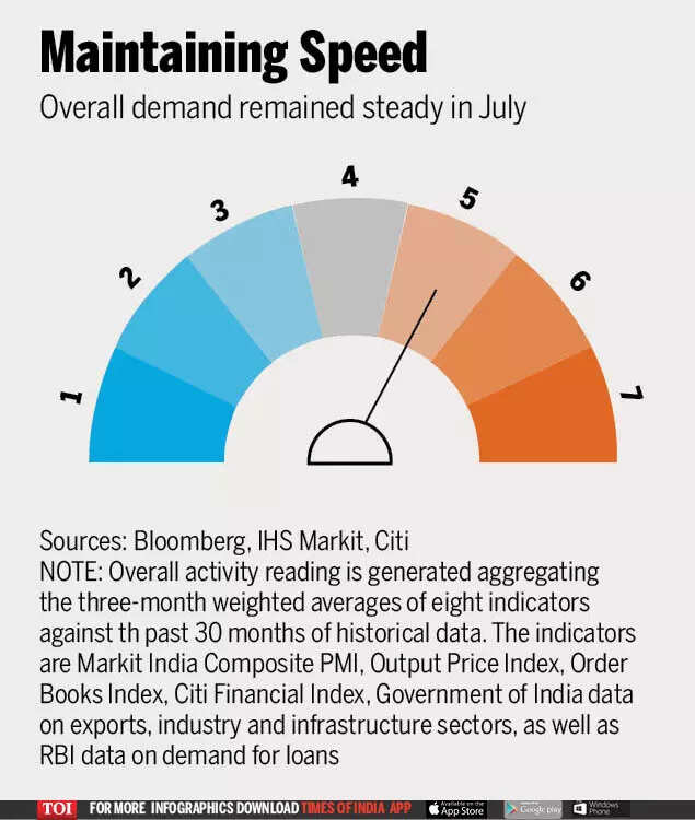 NEW DELHI: India’s economy held steady in July as waning Covid-19 cases paved the way for a gradual improvement in manufacturing and services activity.