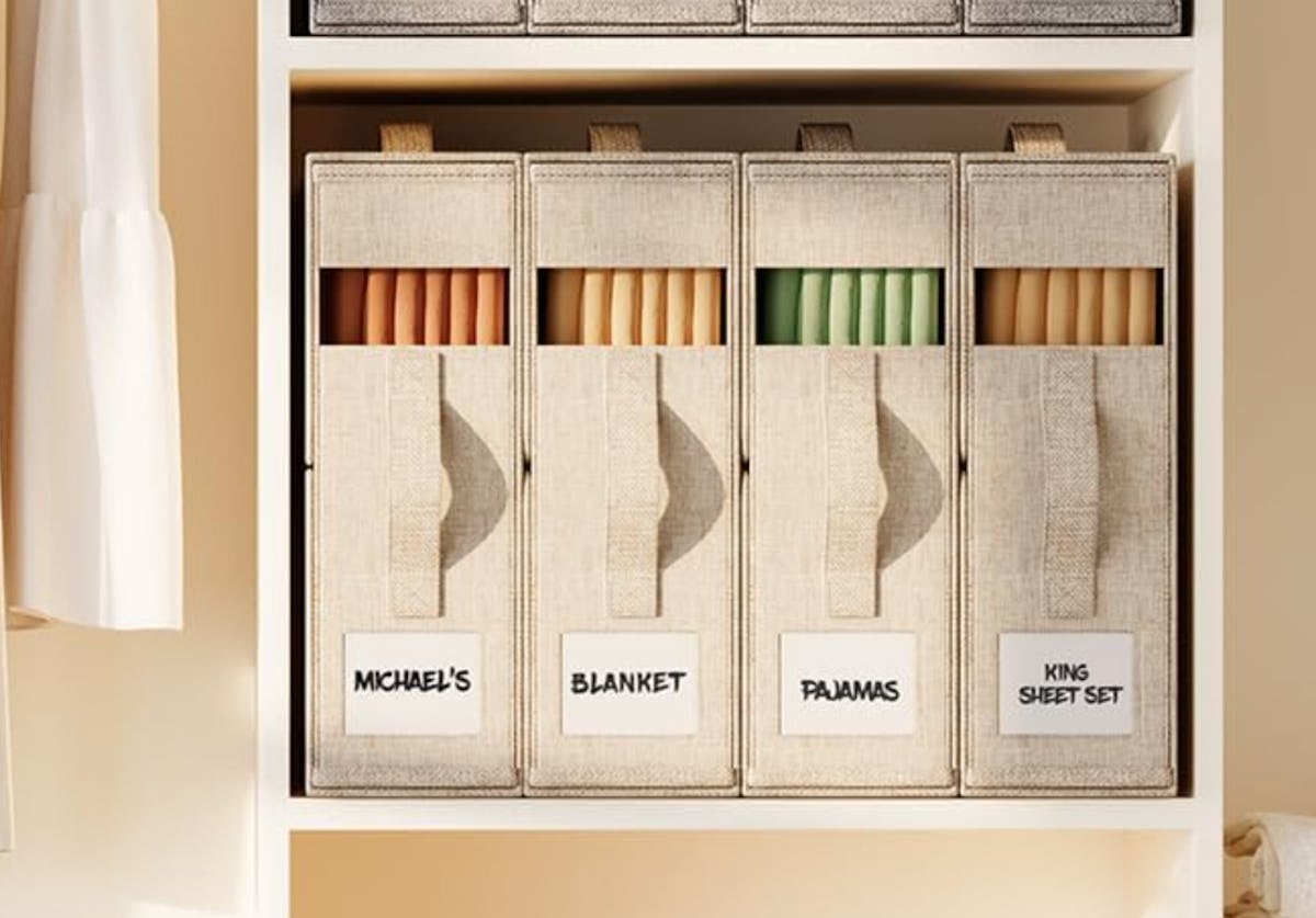 Gather up all of the coordinating sheets for each bed in your home (including the flat sheet, fitted sheet, and pillowcases), then place them in these four sheet organizers so you never have to dig around for them again. They zip securely shut, and there’s a built-in viewing window and a spot for a label to keep everything straight. They can even handle king-size sets.