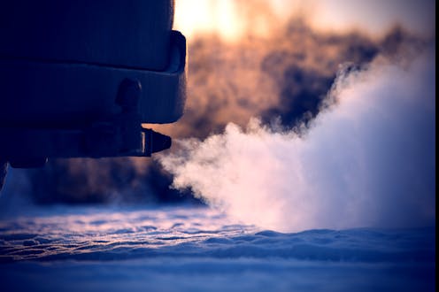 It’s true that leaving your car running will increase planet-warming CO₂ emissions – but not by as much as you might think. For the example above, roughly six minutes of idling produces the same amount of CO₂ as driving one kilometre. This seems a small price to pay to preserve the health of the children you’re picking up from school, or pedestrians walking the streets.