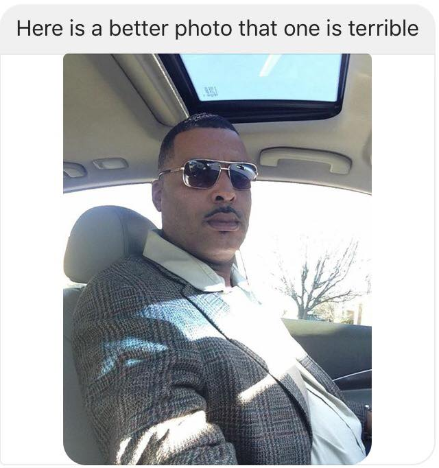 He introduced the selfie of him wearing sunglasses and a suit with a text saying: 'Here is a better photo that one is terrible.'