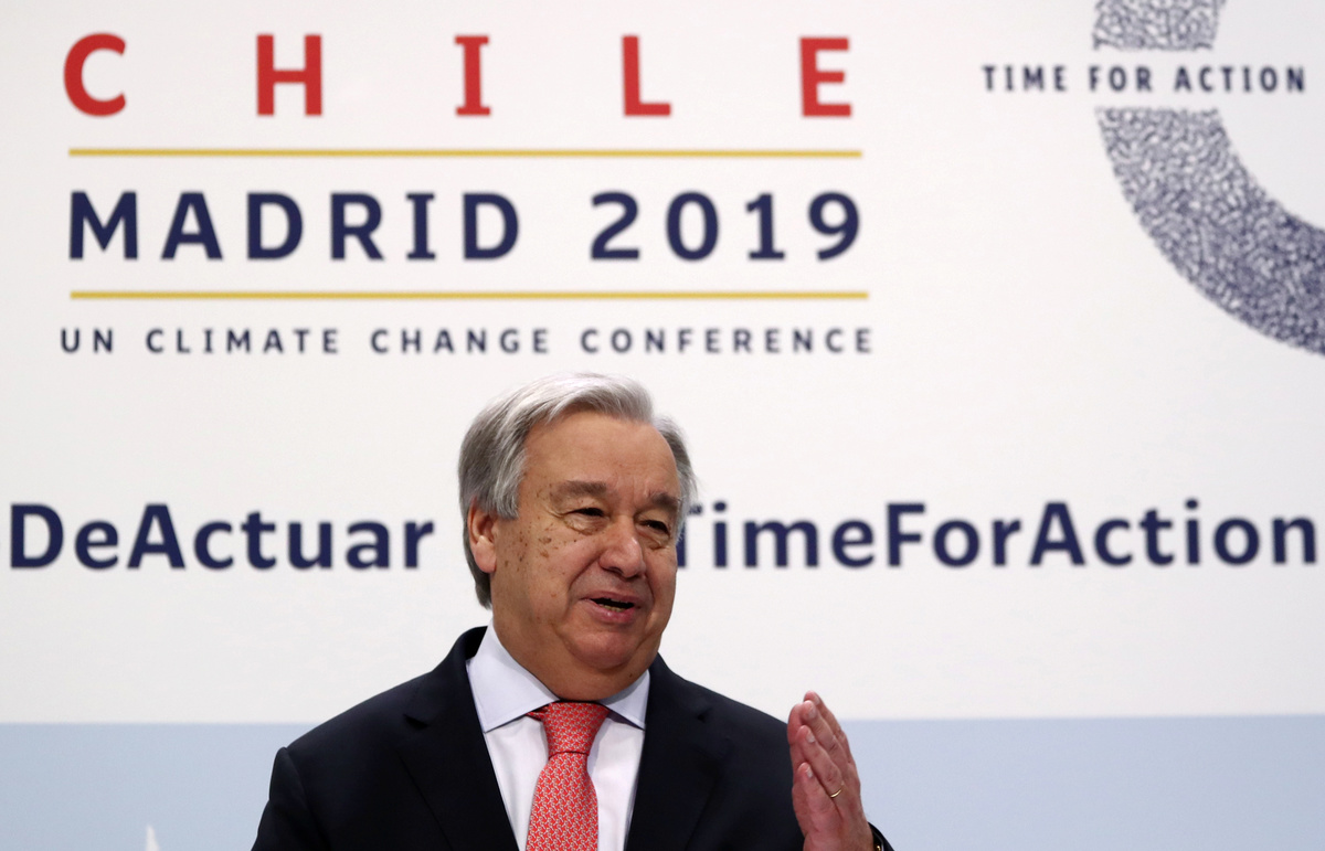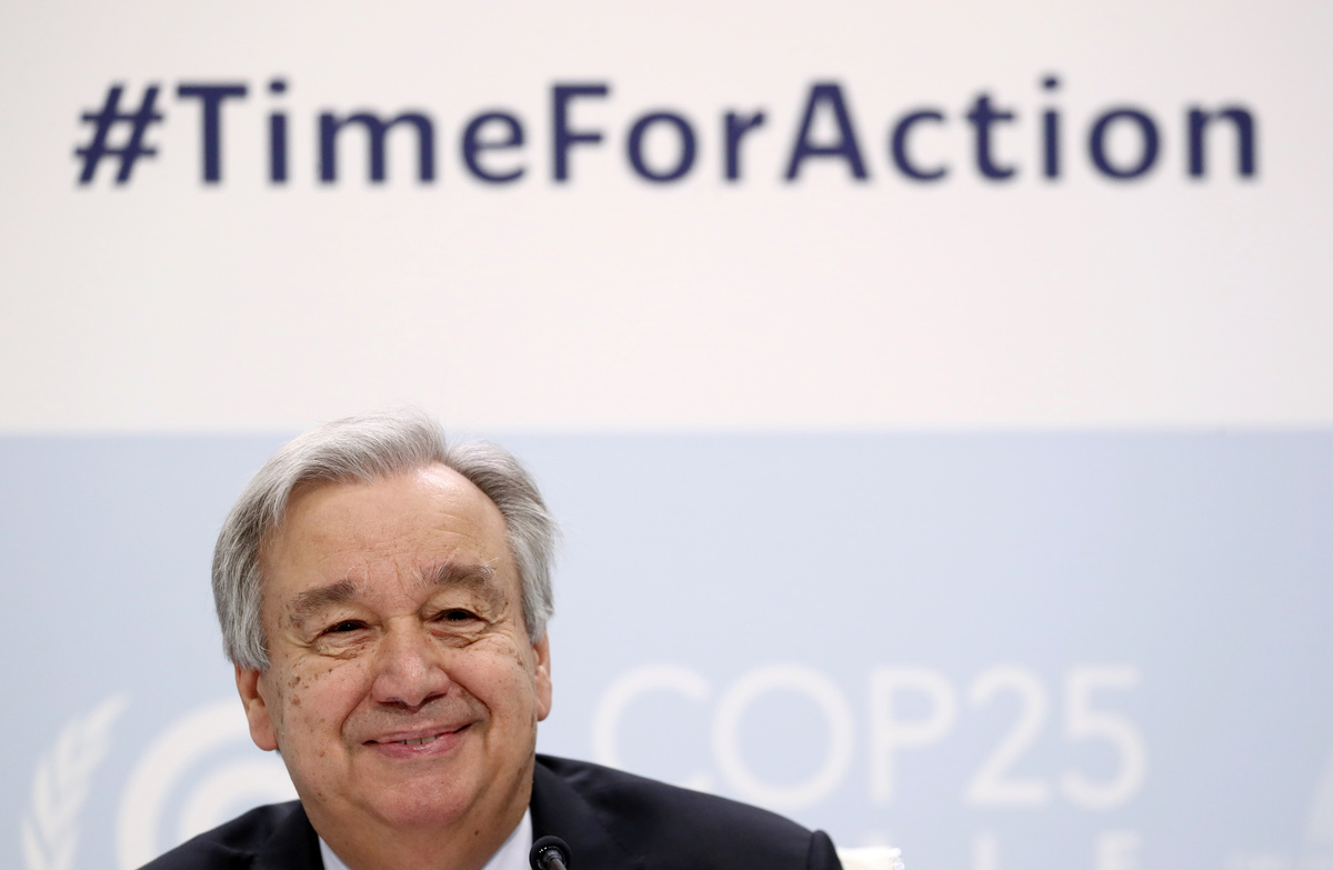 MADRID (Reuters) - The world must stop a "war against nature" and find more political will to combat climate change, United Nations Secretary-General Antonio Guterres said on Sunday, the eve of a two-week global climate summit in Madrid.