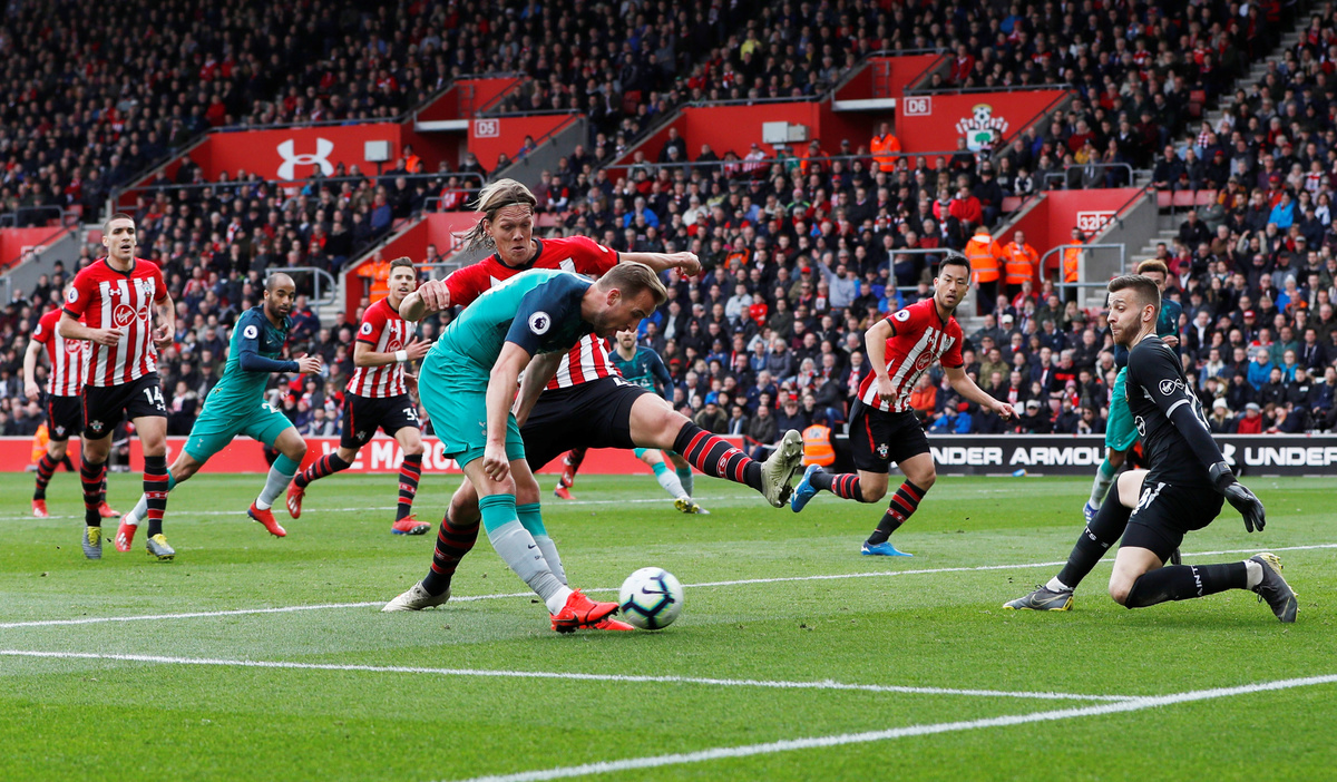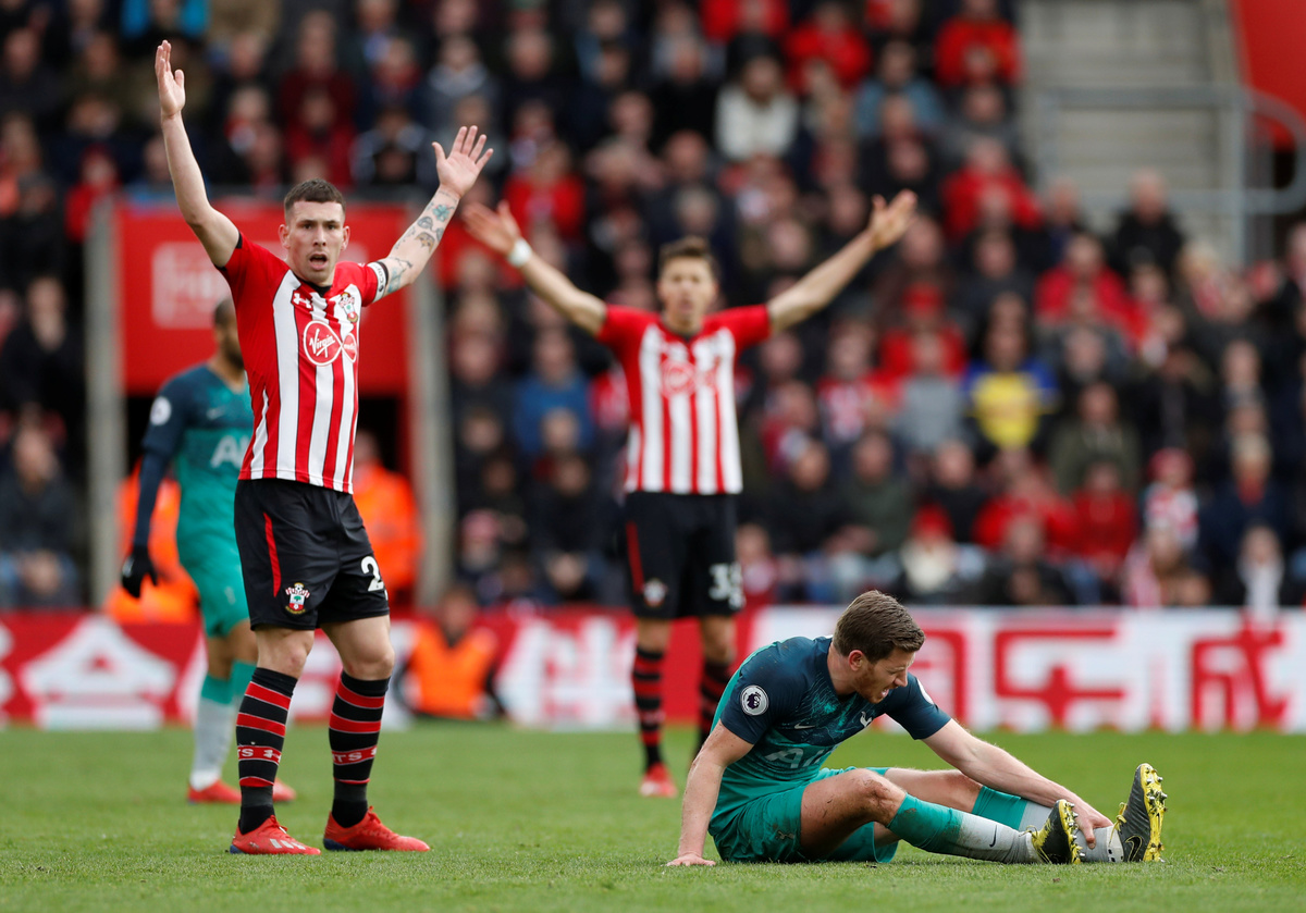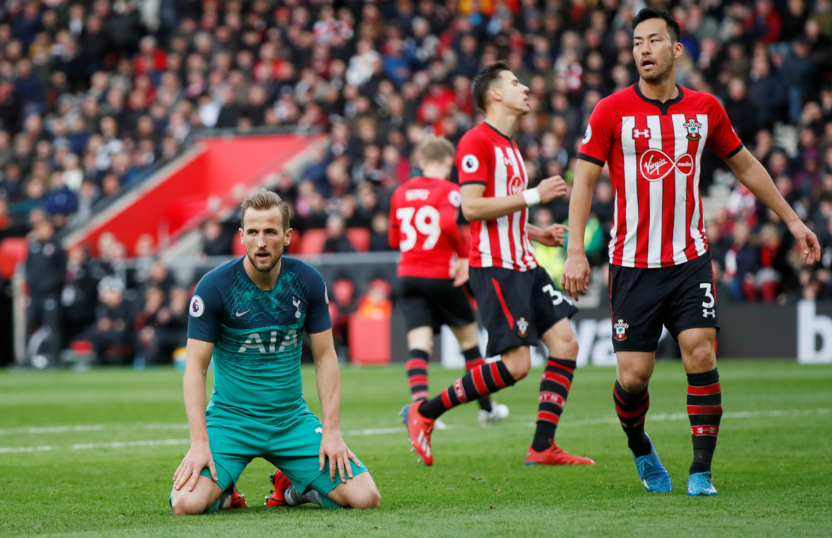 Soccer Football - Premier League - Southampton v Tottenham Hotspur - St Mary's Stadium, Southampton, Britain - March 9, 2019 Southampton's Yan Valery in action with Tottenham's Jan Vertonghen Action Images via Reuters/Paul Childs Soccer Football - Premier League - Southampton v Tottenham Hotspur - St Mary's Stadium, Southampton, Britain - March 9, 2019 Tottenham's Harry Kane scores their first goal Action Images via Reuters/Paul Childs Soccer Football - Premier League - Southampton v Tottenham Hotspur - St Mary's Stadium, Southampton, Britain - March 9, 2019 Tottenham's Harry Kane reacts as Southampton's Maya Yoshida looks on REUTERS/David Klein Soccer Football - Premier League - Southampton v Tottenham Hotspur - St Mary's Stadium, Southampton, Britain - March 9, 2019 Southampton's Shane Long is substituted off as Southampton manager Ralph Hasenhuttl looks on REUTERS/David Klein Soccer Football - Premier League - Southampton v Tottenham Hotspur - St Mary's Stadium, Southampton, Britain - March 9, 2019 Tottenham's Jan Vertonghen down injured as Southampton's Pierre-Emile Hojbjerg looks on Action Images via Reuters/Paul Childs Soccer Football - Premier League - Southampton v Tottenham Hotspur - St Mary's Stadium, Southampton, Britain - March 9, 2019 Tottenham's Kyle Walker-Peters in action with Southampton's Ryan Bertrand REUTERS/David Klein