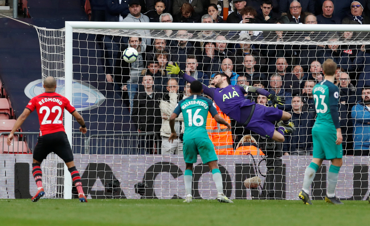 Soccer Football - Premier League - Southampton v Tottenham Hotspur - St Mary's Stadium, Southampton, Britain - March 9, 2019 Southampton's James Ward-Prowse (not pictured) scores their second goal from a free kick past Tottenham's Hugo Lloris REUTERS/David Klein