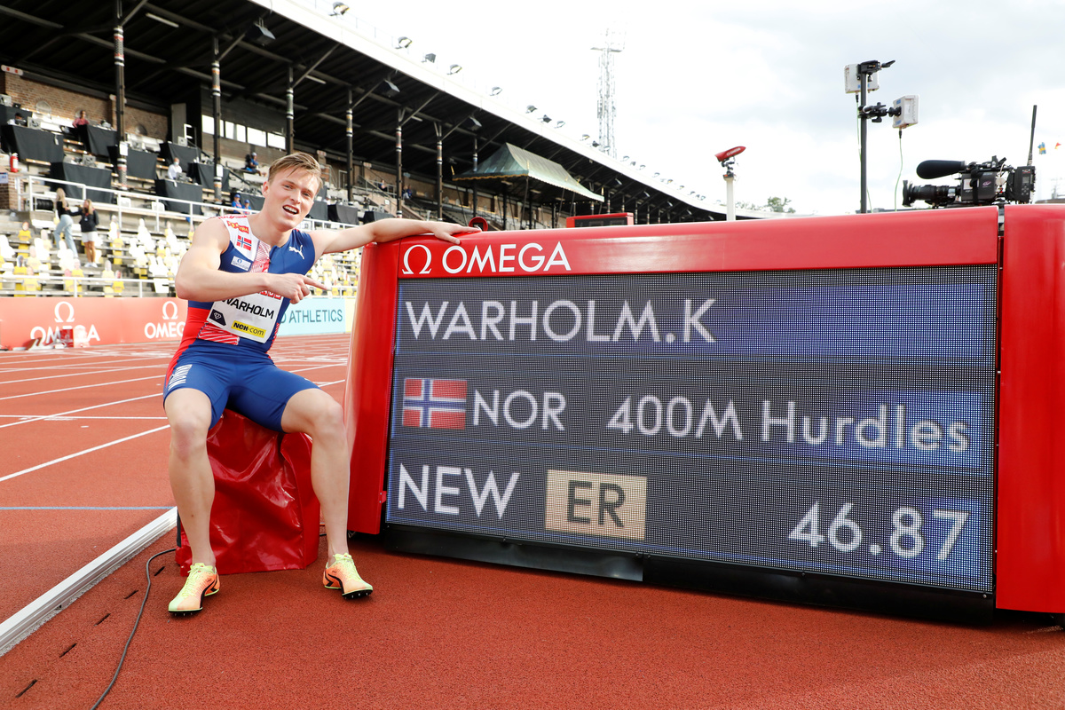 Norwegian sprinter Karsten Warholm broke his own European record in the 400 metres hurdles at Sunday's Diamond League event in Stockholm, clocking a time of 46.87 seconds that was just 0.09 seconds off the world record that has stood for 28 years.