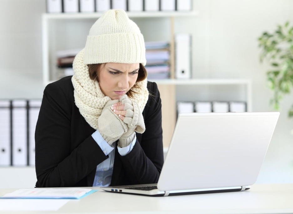 When it comes to comfort in the workplace, temperature is a huge factor. Working in an office that's too cold can sap your productivity and make it difficult to concentrate. Unfortunately, in many crowded offices the temperature may be kept low to counteract body heat, or even save a little on an electric bill during the winter.