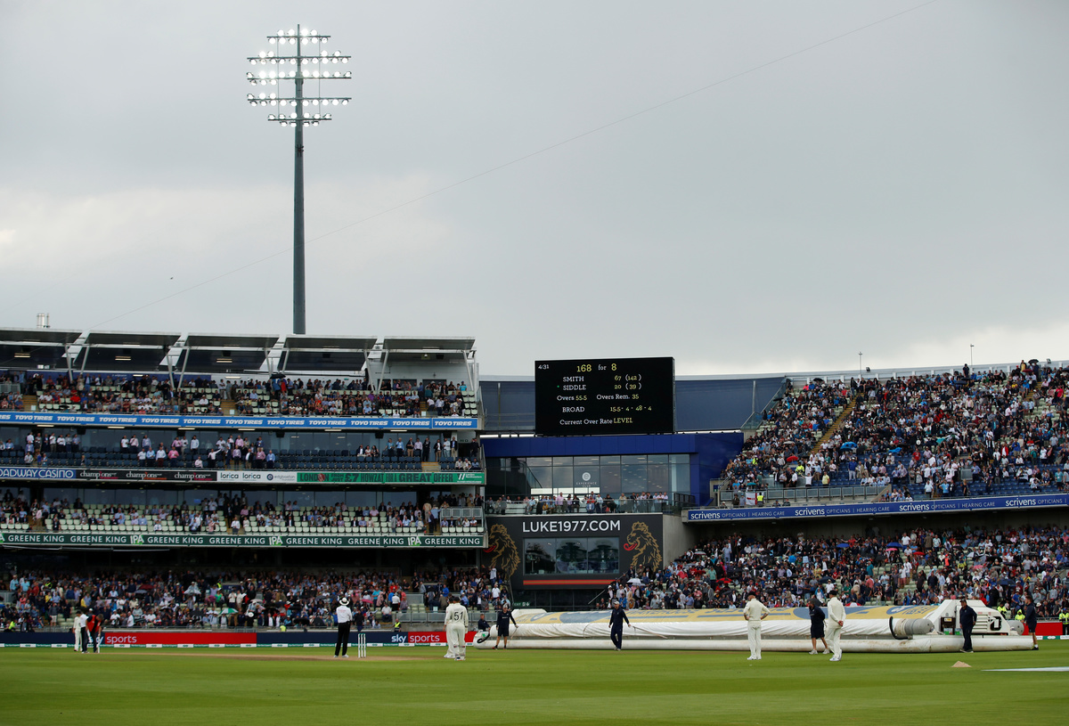 Cricket - Ashes 2019 - First Test - England v Australia - Edgbaston, Birmingham, Britain - August 1, 2019 General view as groundstaff pull the covers during a potential rain delay Action Images via Reuters/Andrew Boyers