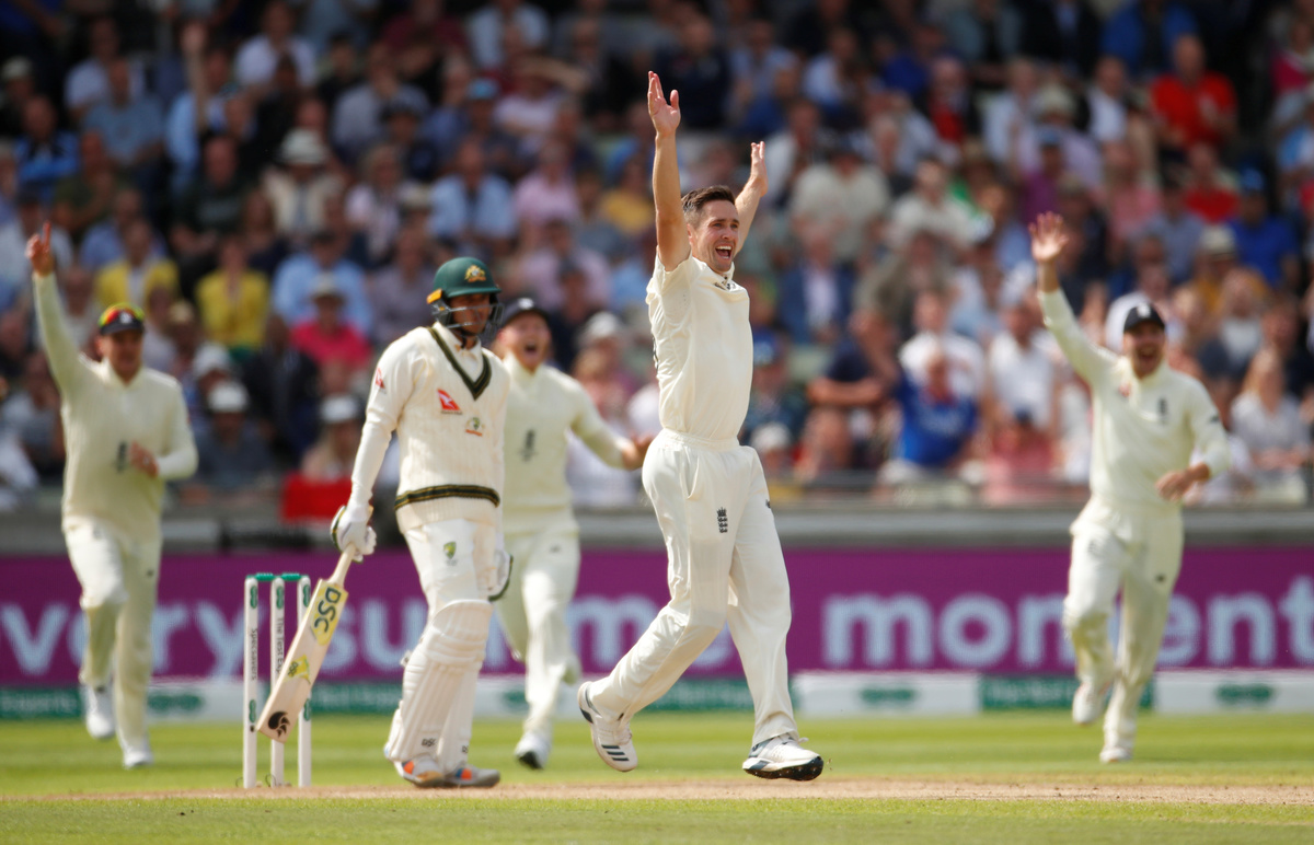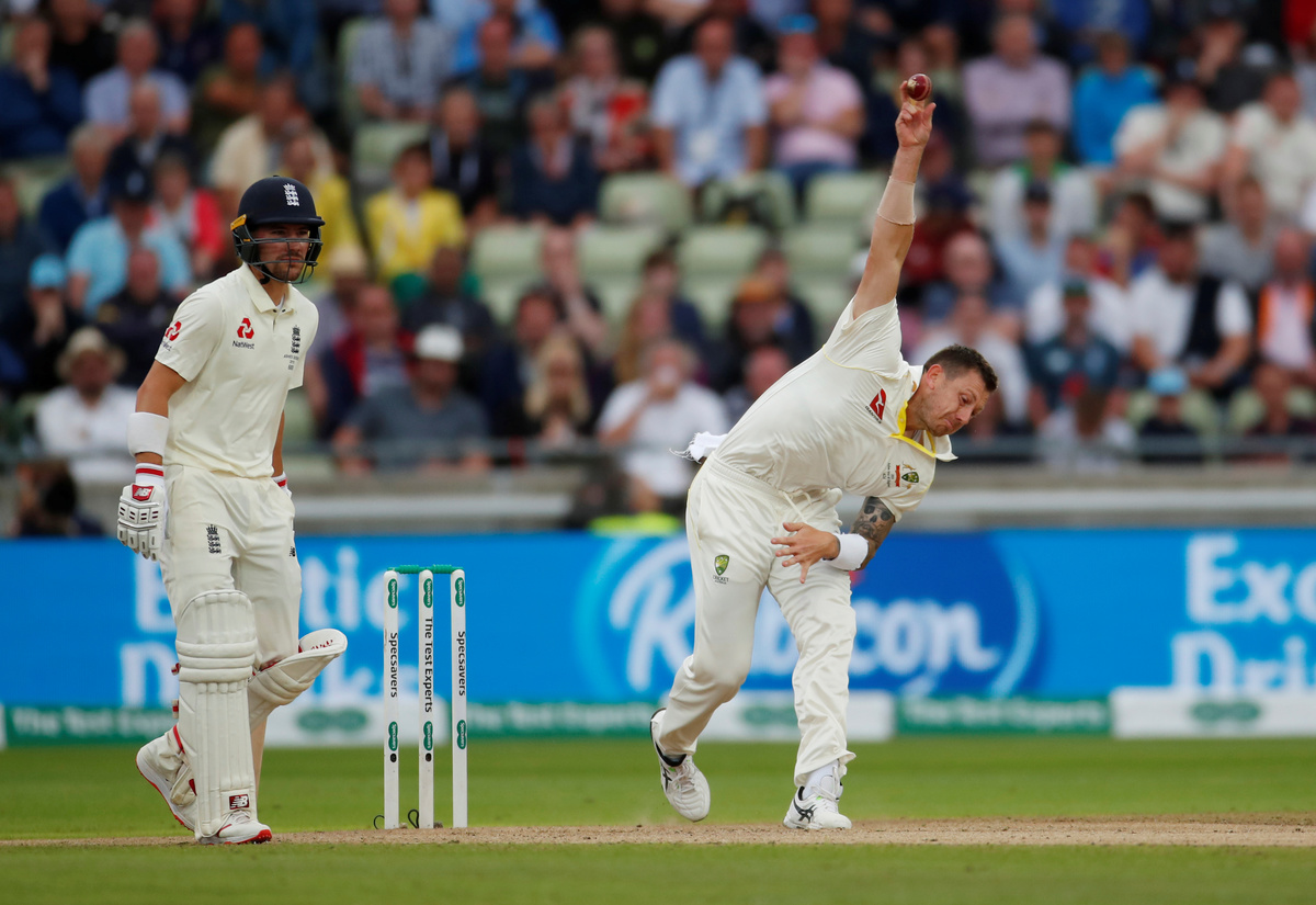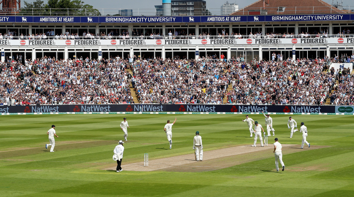 Cricket - Ashes 2019 - First Test - England v Australia - Edgbaston, Birmingham, Britain - August 1, 2019 Australia's David Warner looks dejected after losing his wicket Action Images via Reuters/Carl RecineCricket - Ashes 2019 - First Test - England v Australia - Edgbaston, Birmingham, Britain - August 1, 2019 Australia's Cameron Bancroft in action Action Images via Reuters/Andrew BoyersCricket - Ashes 2019 - First Test - England v Australia - Edgbaston, Birmingham, Britain - August 1, 2019 England fans Action Images via Reuters/Andrew BoyersCricket - Ashes 2019 - First Test - England v Australia - Edgbaston, Birmingham, Britain - August 1, 2019 Australia's Steve Smith in action Action Images via Reuters/Carl RecineCricket - Ashes 2019 - First Test - England v Australia - Edgbaston, Birmingham, Britain - August 1, 2019 England's Stuart Broad takes the wicket of Australia's Cameron Bancroft Action Images via Reuters/Carl RecineCricket - Ashes 2019 - First Test - England v Australia - Edgbaston, Birmingham, Britain - August 1, 2019 England's Ben Stokes in action Action Images via Reuters/Andrew BoyersCricket - Ashes 2019 - First Test - England v Australia - Edgbaston, Birmingham, Britain - August 1, 2019 England's Chris Woakes appeals for the wicket of Australia's Usman Khawaja who is later given out following a review Action Images via Reuters/Andrew BoyersCricket - Ashes 2019 - First Test - England v Australia - Edgbaston, Birmingham, Britain - August 1, 2019 Australia's Travis Head in action Action Images via Reuters/Andrew BoyersCricket - Ashes 2019 - First Test - England v Australia - Edgbaston, Birmingham, Britain - August 1, 2019 Australia's Travis Head in action Action Images via Reuters/Carl RecineCricket - Ashes 2019 - First Test - England v Australia - Edgbaston, Birmingham, Britain - August 1, 2019 Australia's Travis Head is bowled out LBW by England's Chris Woakes Action Images via Reuters/Andrew BoyersCricket - Ashes 2019 - First Test - England v Australia - Edgbaston, Birmingham, Britain - August 1, 2019 England's Stuart Broad celebrates taking the wicket of Australia's Steve Smith before he is reinstated following a review Action Images via Reuters/Andrew BoyersCricket - Ashes 2019 - First Test - England v Australia - Edgbaston, Birmingham, Britain - August 1, 2019 England's Moeen Ali in action Action Images via Reuters/Andrew BoyersCricket - Ashes 2019 - First Test - England v Australia - Edgbaston, Birmingham, Britain - August 1, 2019 England players celebrate the wicket of Australia's Matthew Wade following a review Action Images via Reuters/Carl RecineCricket - Ashes 2019 - First Test - England v Australia - Edgbaston, Birmingham, Britain - August 1, 2019 England's Ben Stokes in action Action Images via Reuters/Andrew BoyersCricket - Ashes 2019 - First Test - England v Australia - Edgbaston, Birmingham, Britain - August 1, 2019 Australia's Steve Smith in action Action Images via Reuters/Andrew BoyersCricket - Ashes 2019 - First Test - England v Australia - Edgbaston, Birmingham, Britain - August 1, 2019 Australia's Peter Siddle ducks a bouncer Action Images via Reuters/Andrew BoyersCricket - Ashes 2019 - First Test - England v Australia - Edgbaston, Birmingham, Britain - August 1, 2019 Australia's James Pattinson in action Action Images via Reuters/Andrew Boyers