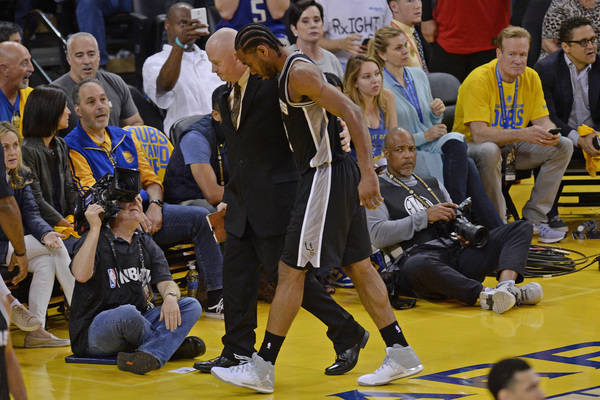 Leonard had 26 points in his 23 minutes. But on a similar shot in the corner moments before the Pachulia foul, Leonard twisted his ankle on teammate David Lee, who was on the Spurs bench. He asked out of the game, then returned again, only to twist it worse on Pachulia's foot, knocking him out for the rest of Game 1 and maybe beyond.