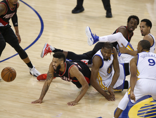 Thompson hit a jumper. Clark nailed a pair of free throws. The Warriors early fourth quarter offensive was nothing spectacular, but it didn't need to be. The Blazers were held to five points in the first six minutes of the fourth quarter and by the time Durant and Curry returned _ having left in a tie game _ the Warriors were up 10, using a 15-5 run.