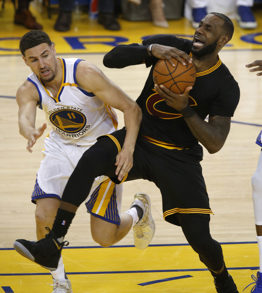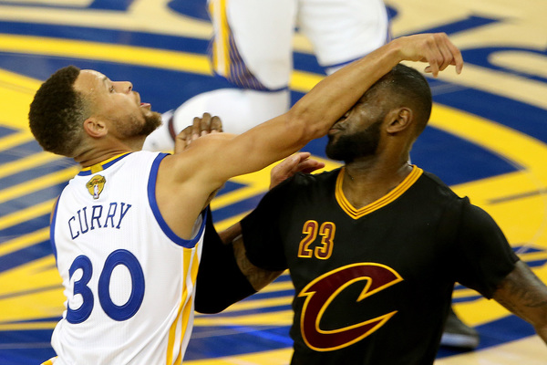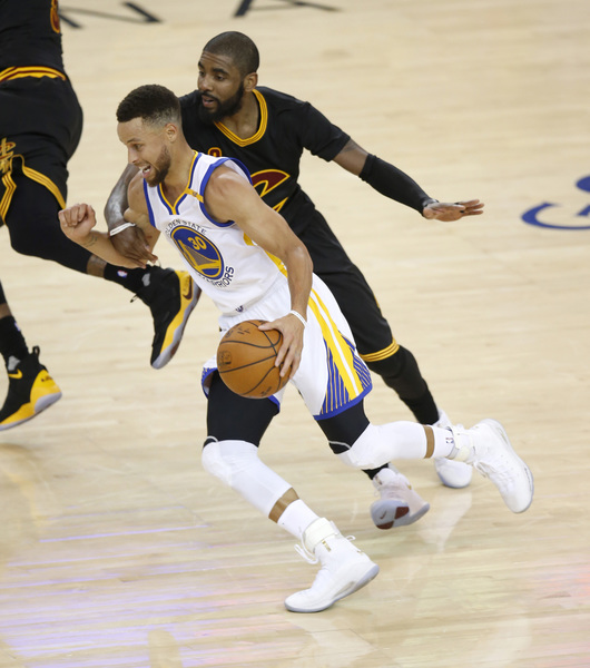Durant and James matched each other in a feisty duel. Once during the first quarter, Durant toppled James as he blew by him, then drove in for a dunk. Warriors point guard Curry and Cavaliers point guard Kyrie Irving showed off their ball handling ability.