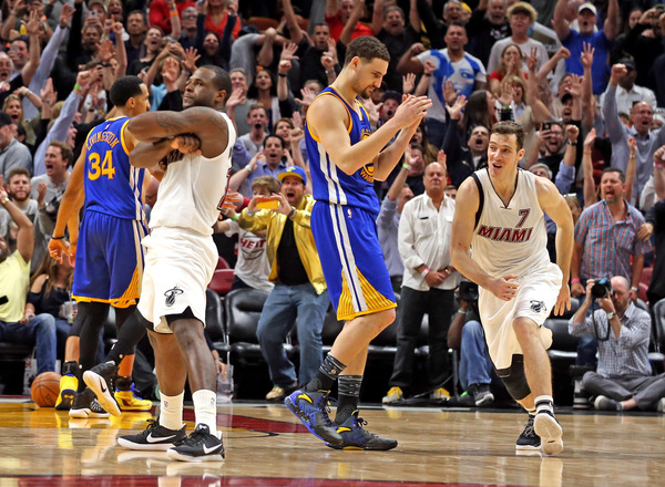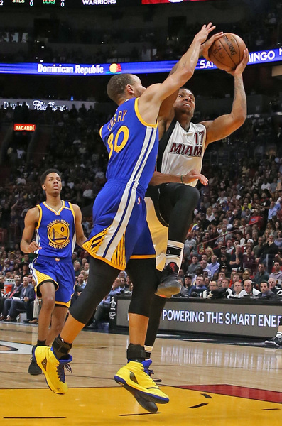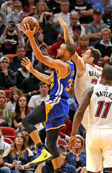 This development contradicts, though, how things played out in the Warriors' victory over Miami in Oakland earlier this month. Then, the Warriors compensated for a poor offensive showing (97 points) with strong defense (holding Miami to 36.1 percent shooting). In Miami, the Warriors produced with the usual suspects in Curry (30 points on 11-of-16 shooting, 5-of-9 from -point range), Kevin Durant (24 points) and Klay Thompson (19 points). Warriors guard Omri Casspi added 10 points off the bench.