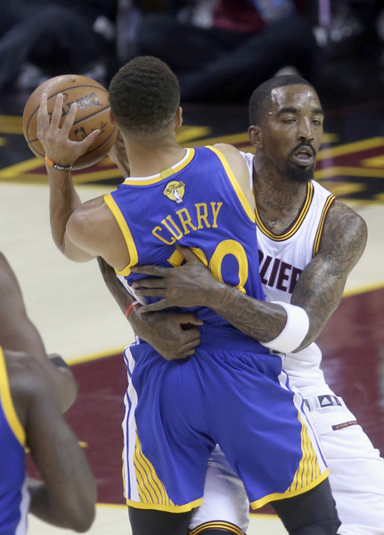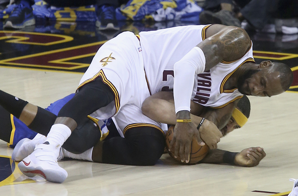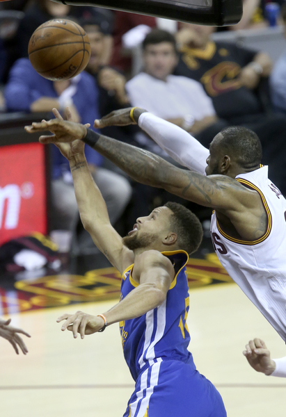 But Andre Iguodala, who has had a quiet postseason, made the biggest defensive play of the night, stripping James and knocking it off his leg out of bounds. Curry got the ensuing inbounds, absorbed the foul and made the game-sealing free throws.