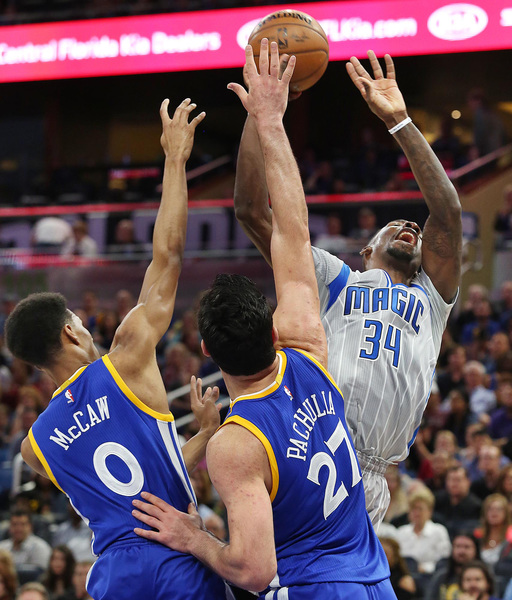 But it didn't last. McGee went to the bench to start the second quarter. He was joined by Durant and Steph Curry. Without their two primary scorers, the Warriors' fell into their most prolonged cold spell of the season. They didn't score for the first 5:15 of the second quarter, turning it over three more times and missing their first seven shots. Orlando rattled off a 16-0 run to take a 10-point lead.