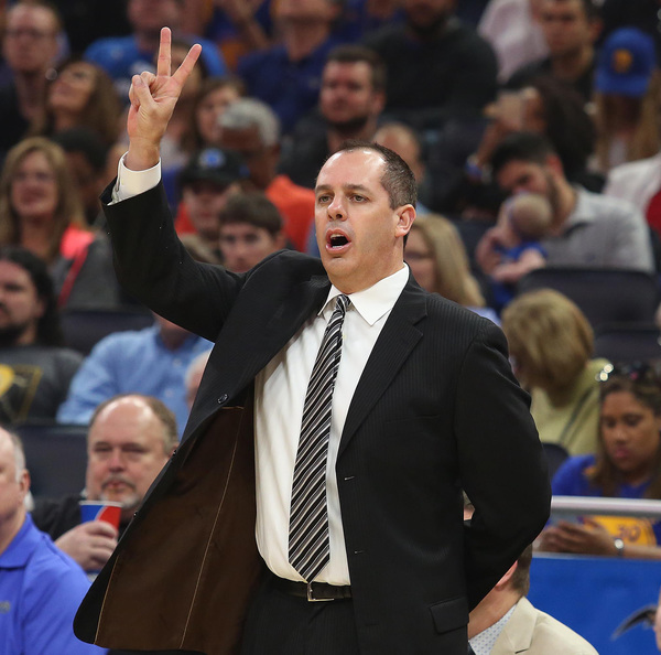 Klay Thompson airballed a 15-footer on the game's second possession. But at least he got a shot off. That was better than most of Golden State's early possessions. The Warriors had eight turnovers in the first seven minutes. The Magic popped out to a 16-10 lead.