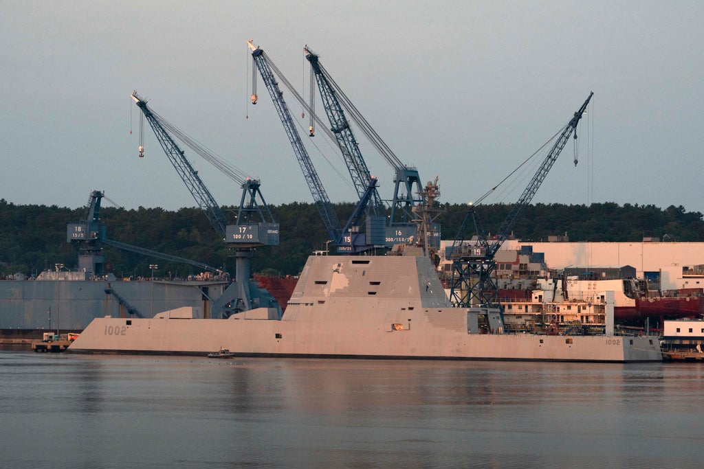 The warship is the last in a class of three ships the U.S. Navy has touted as the largest and most technologically sophisticated destroyers in its history. The ship is 610 feet (186 meters) long. The Arleigh Burke-class destroyers constructed in Bath starting in the late 1980s were a little less than 510 feet (155 meters).