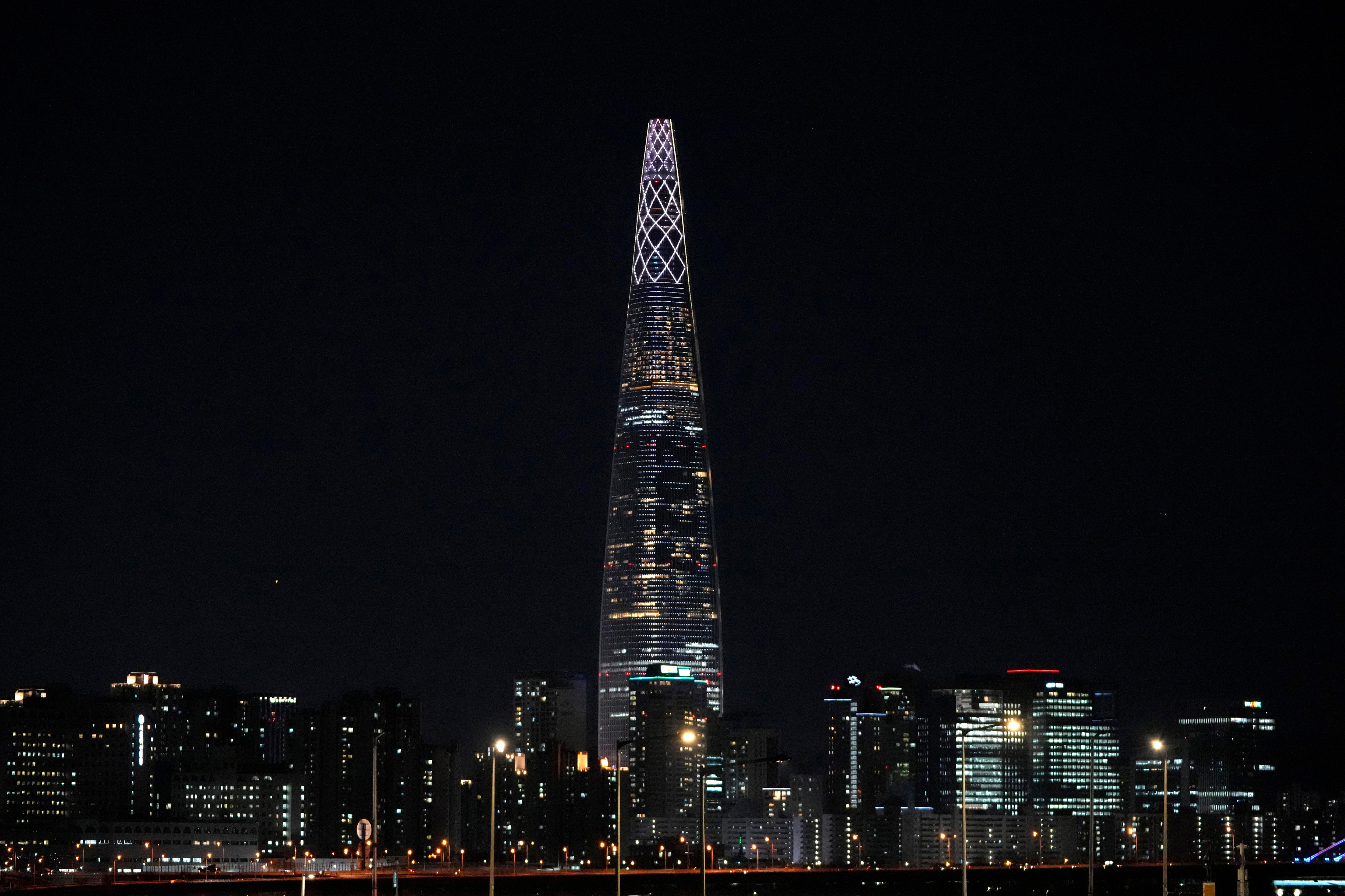 Crowds gathered at the Taipei 101 skyscraper in Taiwan.