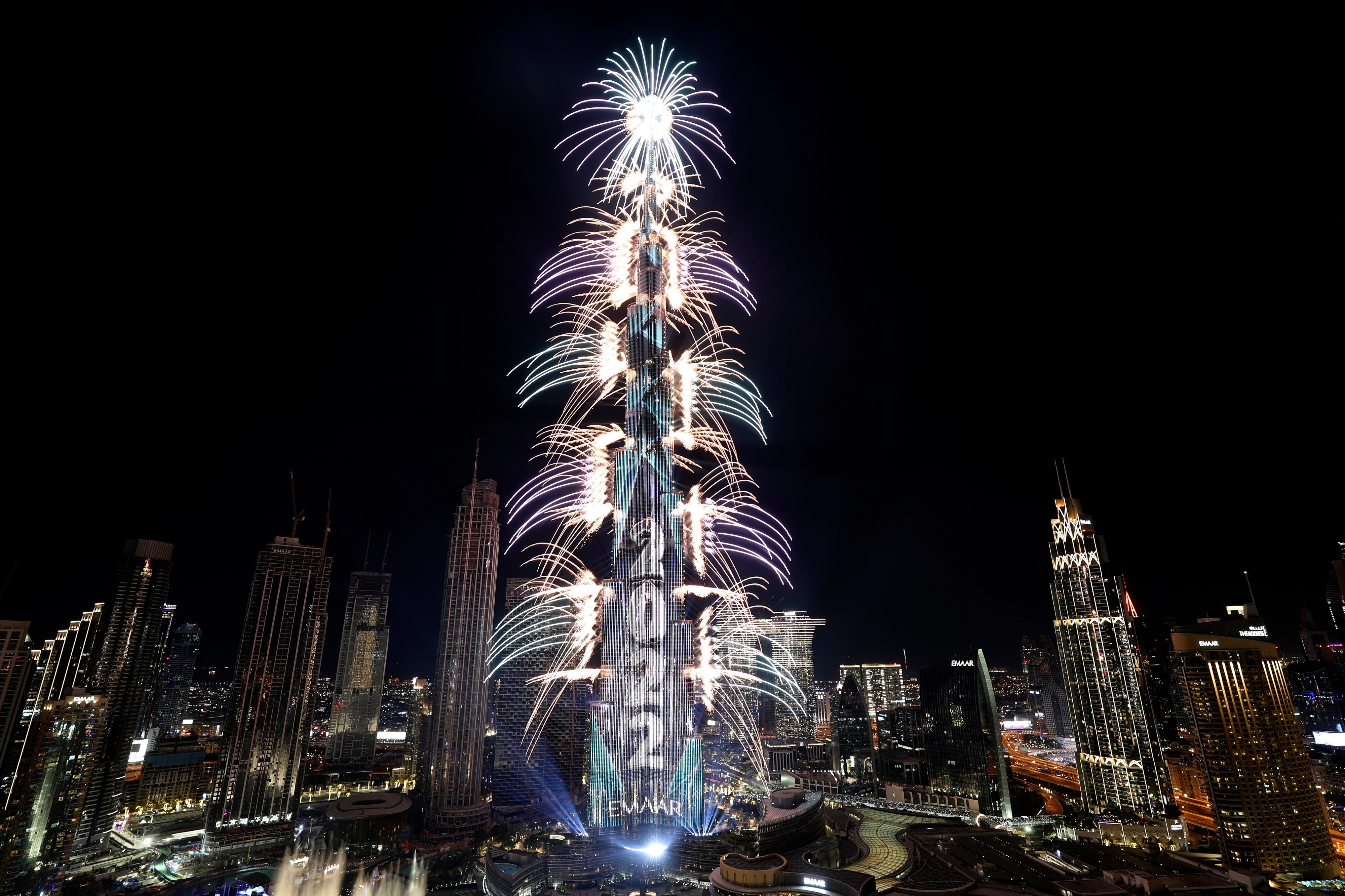 An elaborate fireworks display was held at the world's tallest skyscraper the Burj Khalifa in Dubai to ring in 2022.