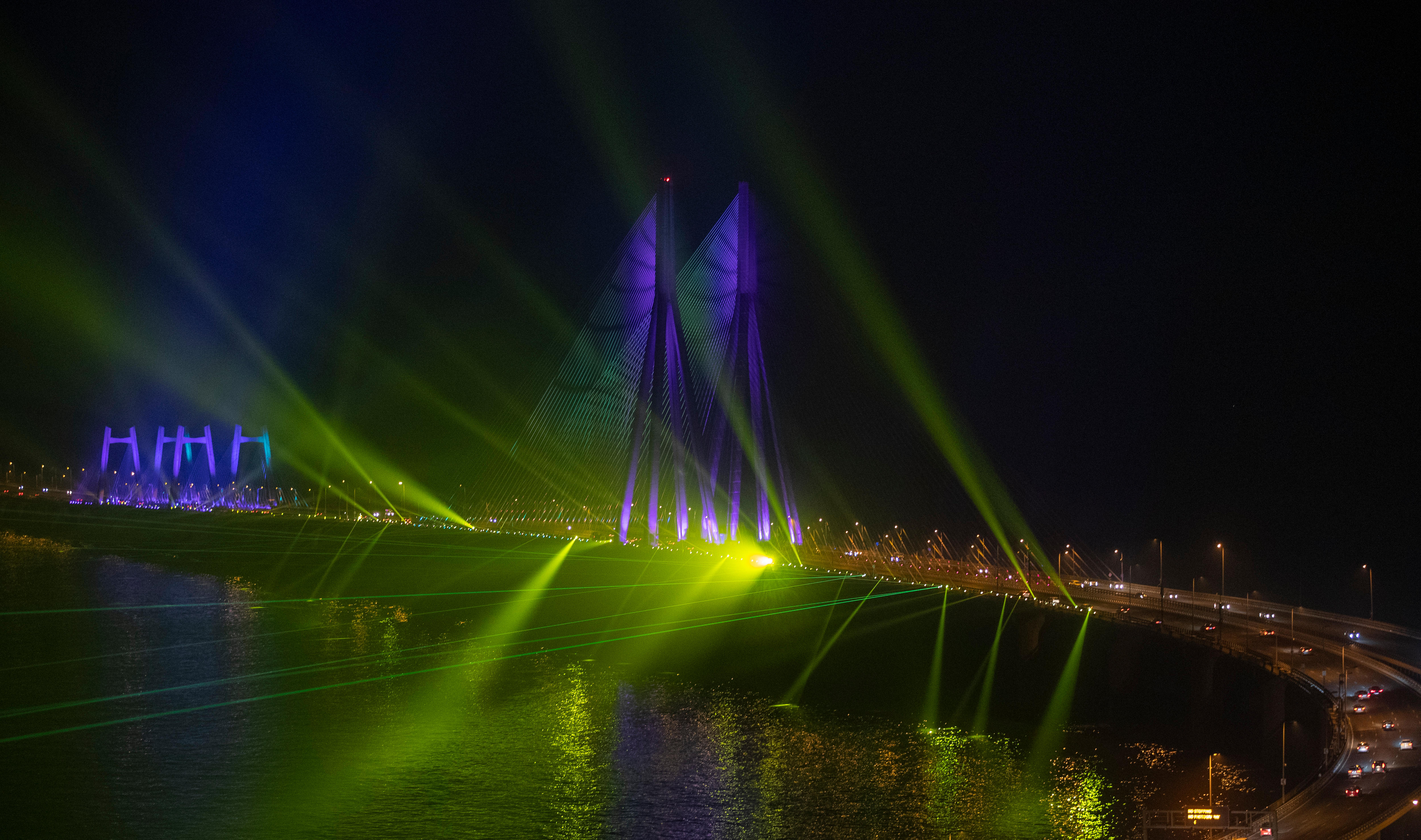 In Mumbai, a laser light show lit up the Bandra Worli sea link.