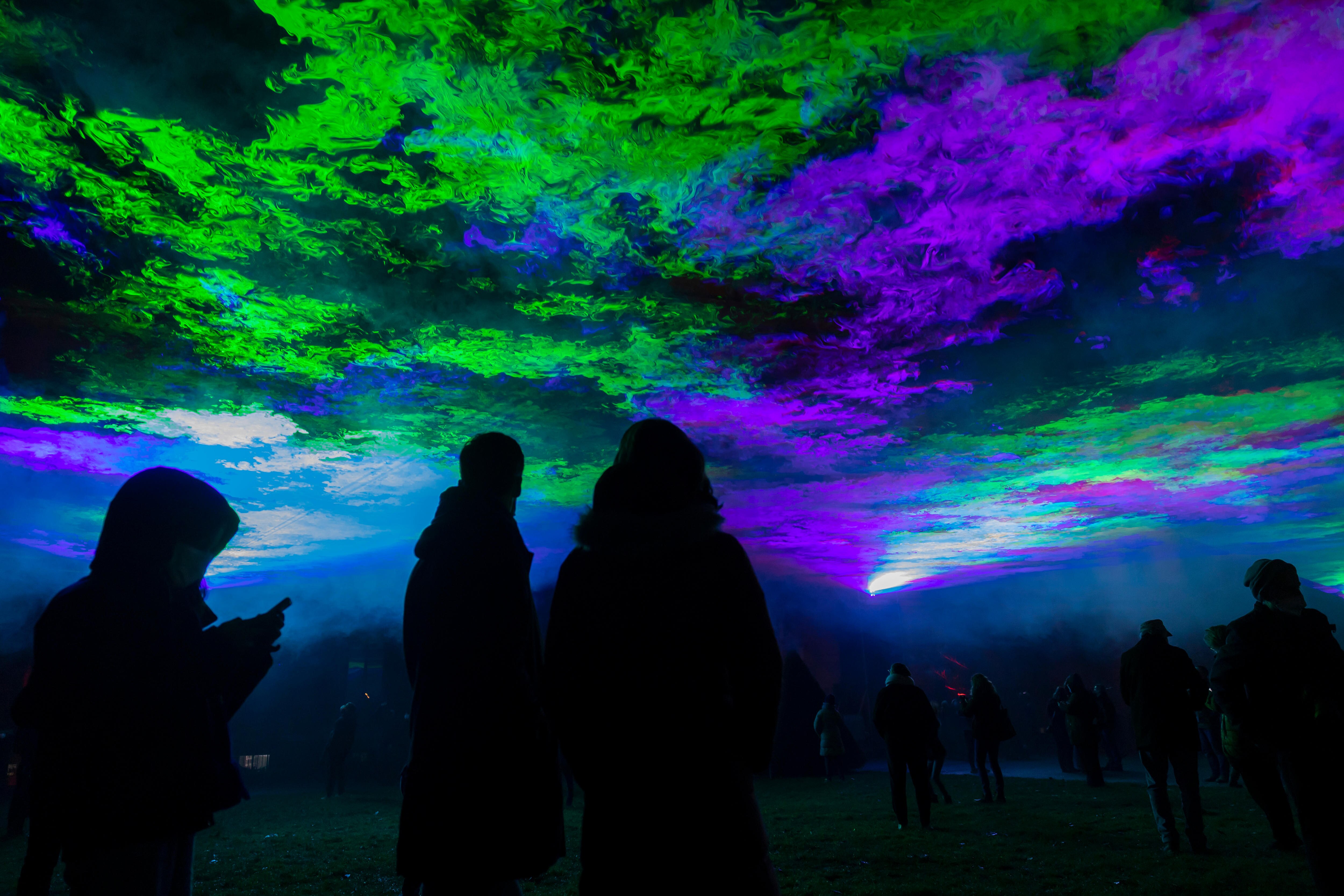 Swiss artist Dan Acher created a sound and light show called Borealis at the parc des Bastions, in Geneva.