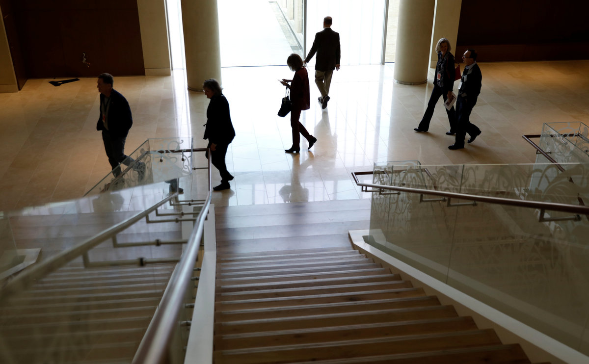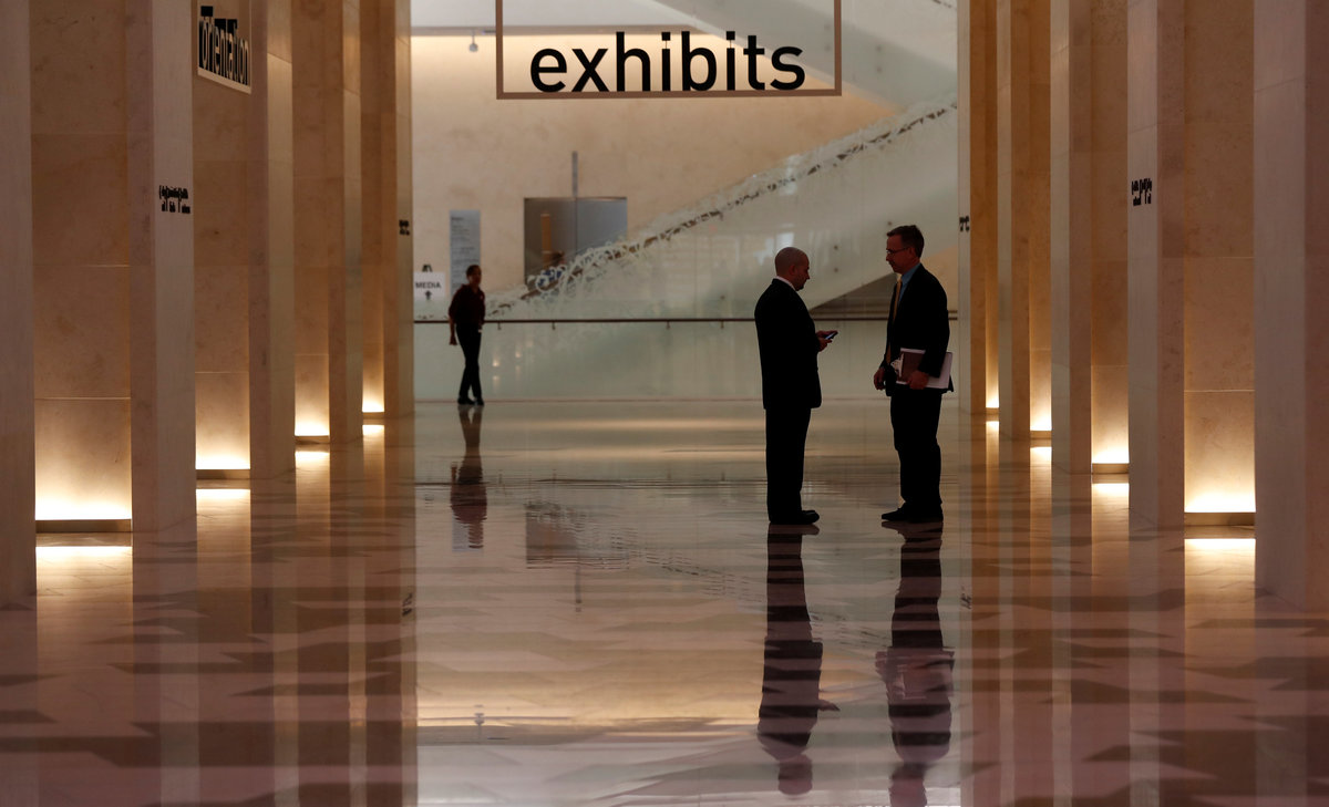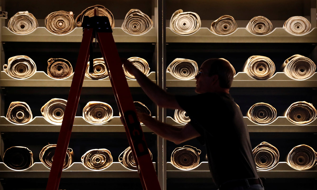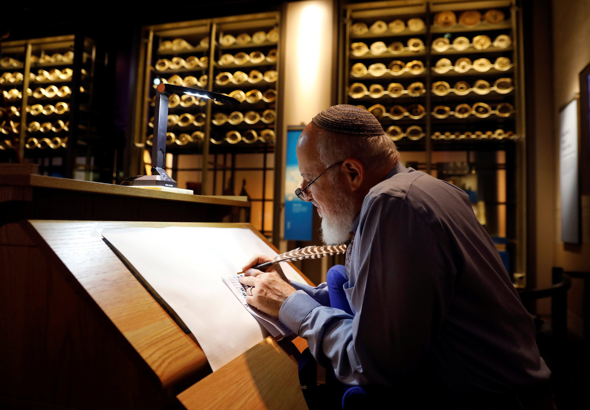 Visitors stand in the entrance hall at the Museum of the Bible during a preview day in Washington, U.S., November 14, 2017. REUTERS/Kevin LamarqueA visitor looks at various Bibles during a preview at the Museum of the Bible in Washington, U.S., November 14, 2017. REUTERS/Kevin LamarqueWith ancient scrolls as a backdrop, Israeli Eliezer Adam works with ink and feather copying the Five Books of Moses which he says will take a year, at the Museum of the Bible in Washington, U.S., November 14, 2017. REUTERS/Kevin LamarqueVisitors stand inside a prison cell exhibit during a preview at the Museum of the Bible in Washington, U.S., November 14, 2017. REUTERS/Kevin LamarqueA visitor stands near Torah scrolls on display during a preview at the Museum of the Bible in Washington, U.S., November 14, 2017. REUTERS/Kevin LamarqueA worker climbs a ladder beside Torah scrolls on display during a preview at the Museum of the Bible in Washington, U.S., November 14, 2017. REUTERS/Kevin LamarqueVisitors make their way through the main atrium during a preview at the Museum of the Bible in Washington, U.S., November 14, 2017. REUTERS/Kevin LamarqueVisitors make their way through the main atrium during a preview at the Museum of the Bible in Washington, U.S., November 14, 2017. REUTERS/Kevin LamarqueVisitors enter an exhibit room during a preview at the Museum of the Bible in Washington, U.S., November 14, 2017. REUTERS/Kevin LamarqueA man takes a photo at an exhibit room during a preview of the Museum of the Bible in Washington, U.S., November 14, 2017. REUTERS/Kevin LamarqueA visitor enters an exhibit room during a preview at the Museum of the Bible in Washington, U.S., November 14, 2017. REUTERS/Kevin LamarqueChildren play with an interactive exhibit during a preview at the Museum of the Bible in Washington, U.S., November 14, 2017. REUTERS/Kevin LamarqueA woman looks at a video exhibit during a preview day at the Museum of the Bible in Washington, U.S., November 14, 2017. REUTERS/Kevin LamarquePeople walk through an exhibit room during a preview day at the Museum of the Bible in Washington, U.S., November 14, 2017. REUTERS/Kevin LamarqueA worker mops the floor during a preview day at the Museum of the Bible in Washington, U.S., November 14, 2017. REUTERS/Kevin LamarqueA woman sits outside an exhibit room during a preview of the Museum of the Bible in Washington, U.S., November 14, 2017. REUTERS/Kevin LamarqueA couple look at a Bible display during a preview of the Museum of the Bible in Washington, U.S., November 14, 2017. REUTERS/Kevin LamarquePeople pass the Museum of the Bible, which opens to the public later this week, in Washington, U.S., November 14, 2017. REUTERS/Kevin LamarqueA woman looks at a Bible during a preview of the Museum of the Bible in Washington, U.S., November 14, 2017. REUTERS/Kevin Lamarque